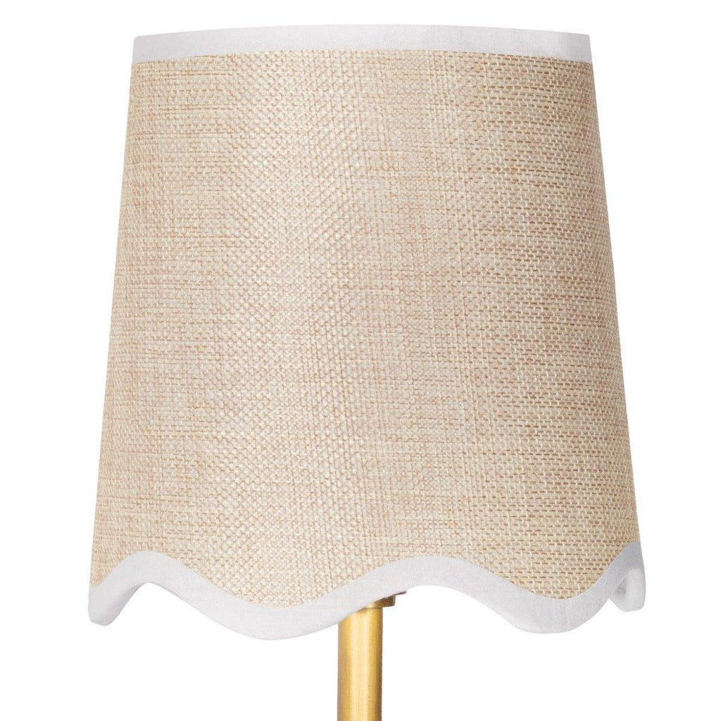 Bring the essence of a summer escape to any room with this sconce. Smooth curves and a polished design make this sconce an unexpected classic, while the woven shade and scalloped linen trim add an element of serenity to your coastal retreat. The sconce measures 6"W x 8.75"D x 14.5"H. and takes a 60-watt maximum bulb (not included). Click on images for greater detail.