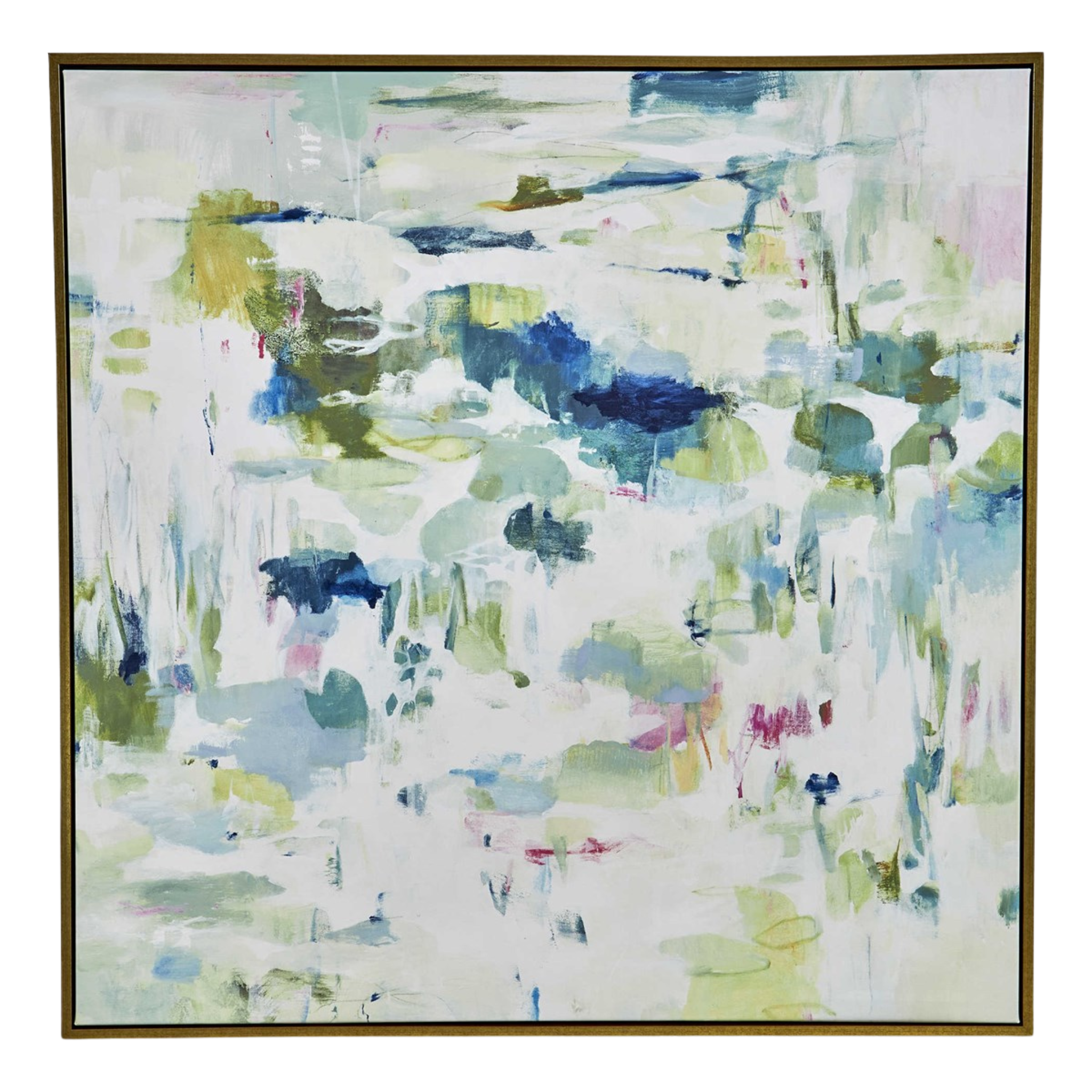 The Abstract Reflections framed canvas features abstract shades of green and blue with highlights of fuchsia. A solid wood gallery frame with gold finish completes the artwork. May be hung horizontal or vertical. Each canvas is proudly handcrafted and printed in the USA. Artwork by Lisa Ridgers.