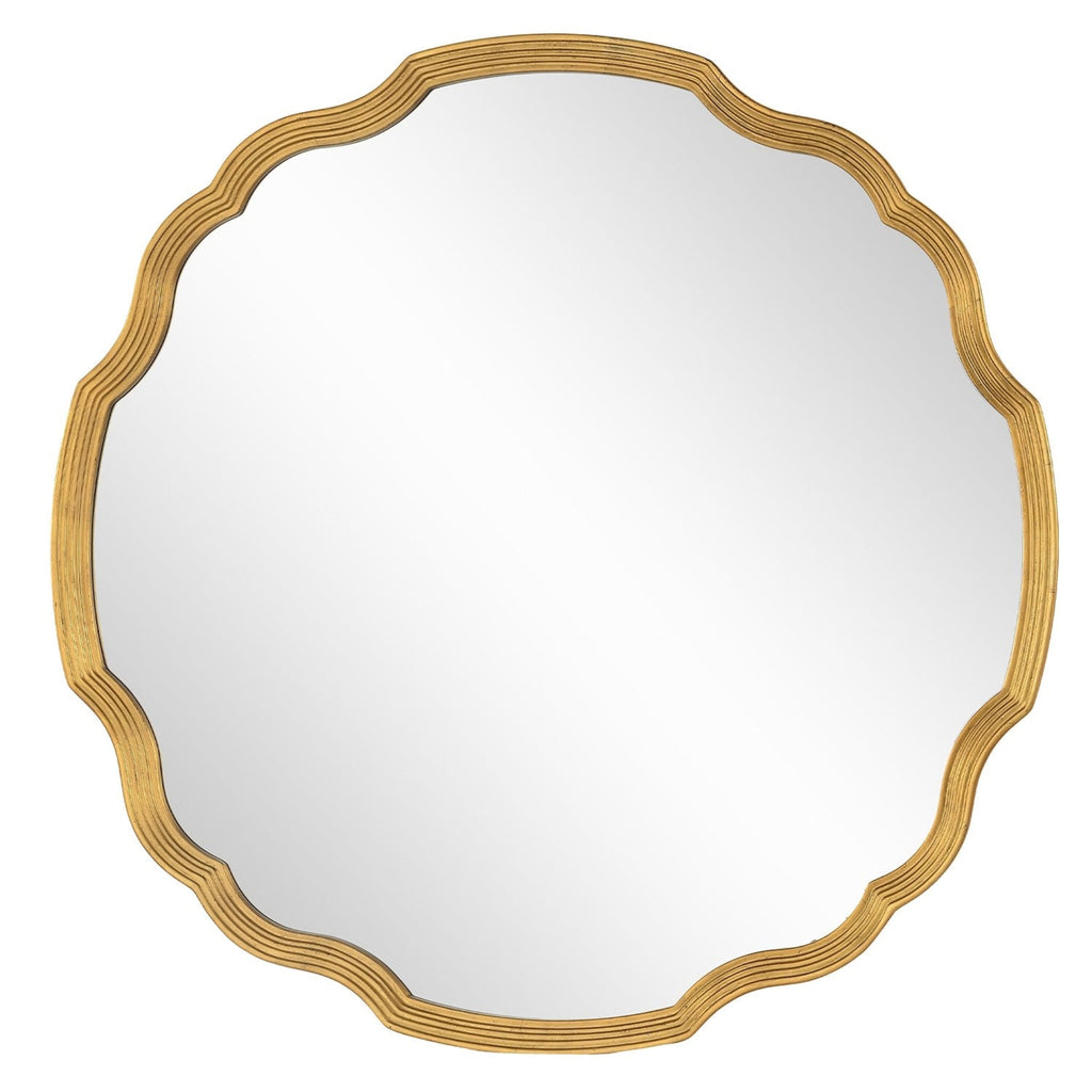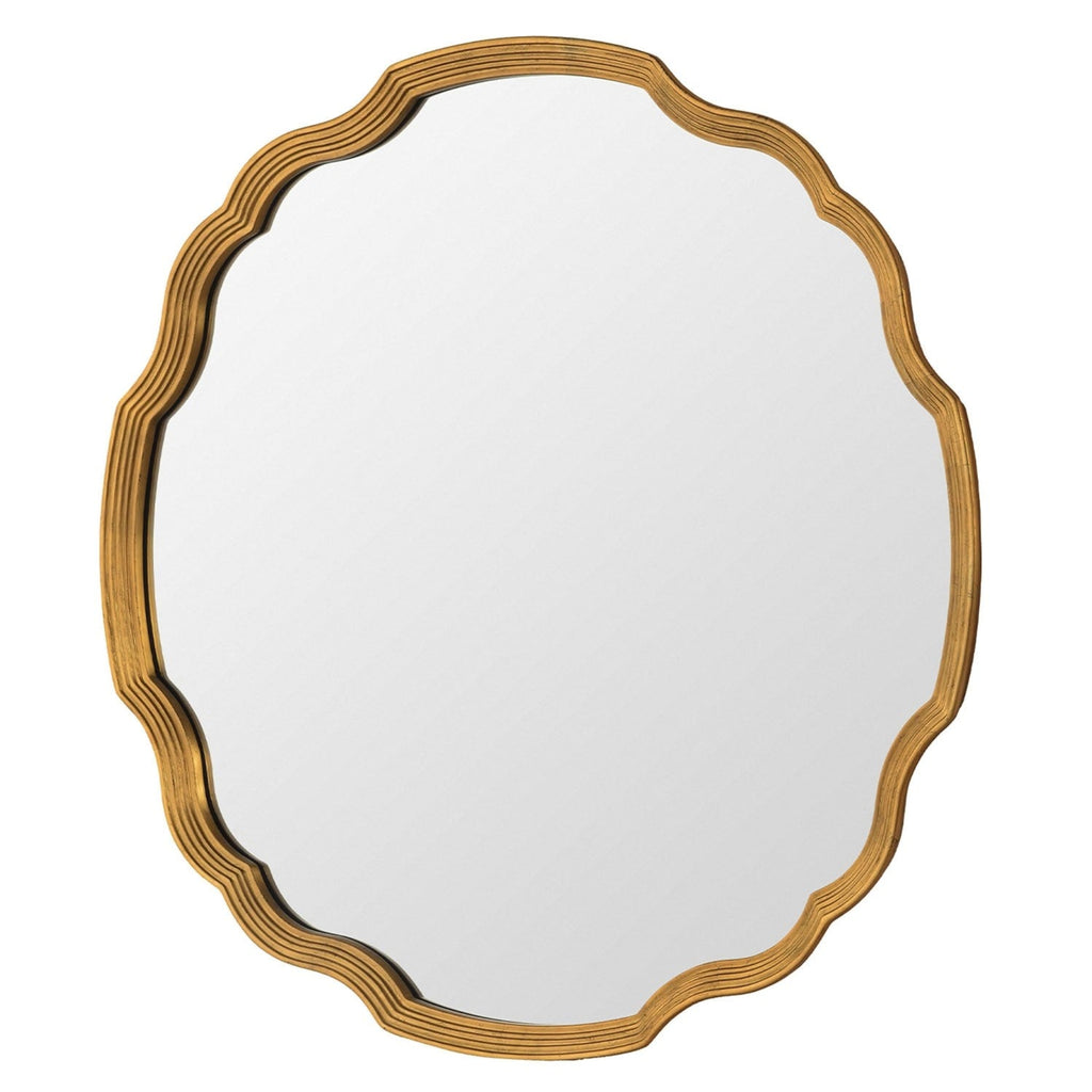 Hand Carved Rounded Chippendale Distressed Gold Leaf Framed Wall Mirror