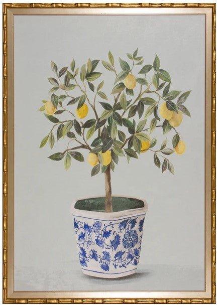 Lemon Tree in Blue & White Pot Framed Wall Art
