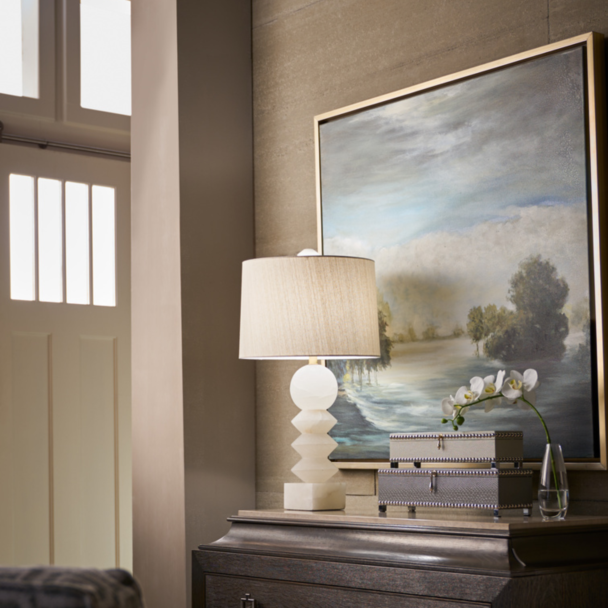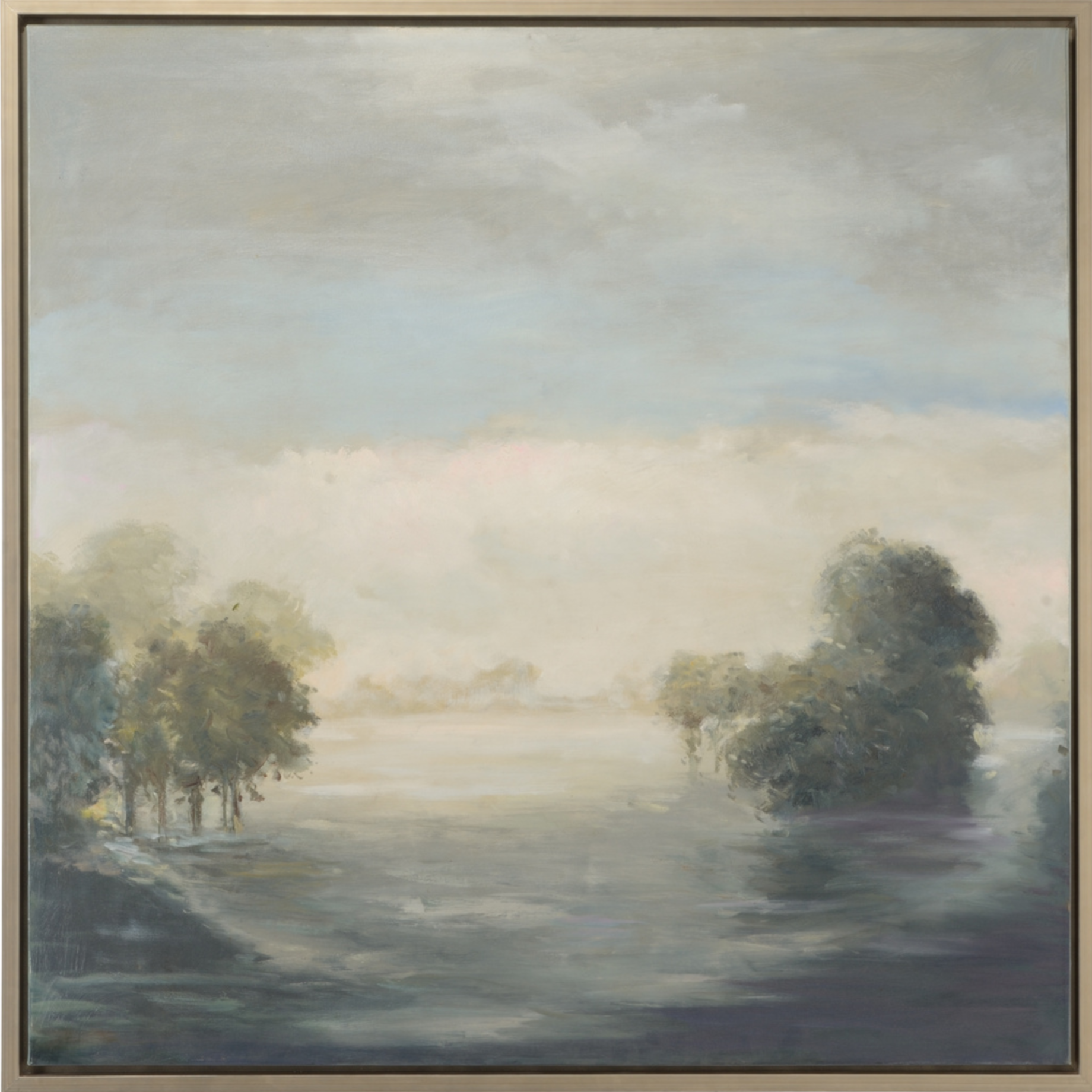 The Morning Mist is a landscape created from oil on canvas. Features a silver wood frame. Click images for greater detail.