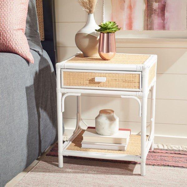 Bamboo & Rattan Natural & White One Drawer Nightstand