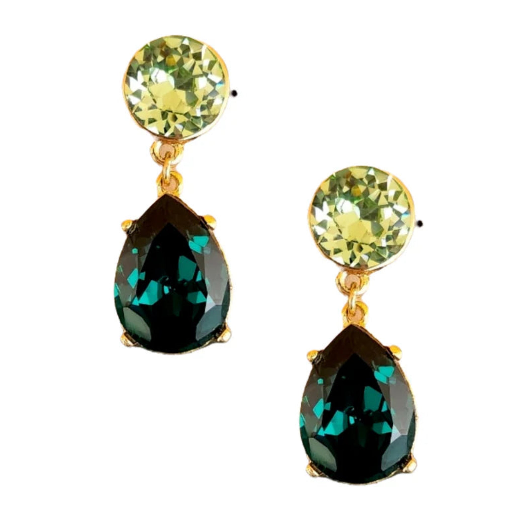 Shine bright with these stunning Peridot & Emerald Teardrop Pierced Earrings. Beautiful two tone gems polish any look, from casual chic to formal sophistication.