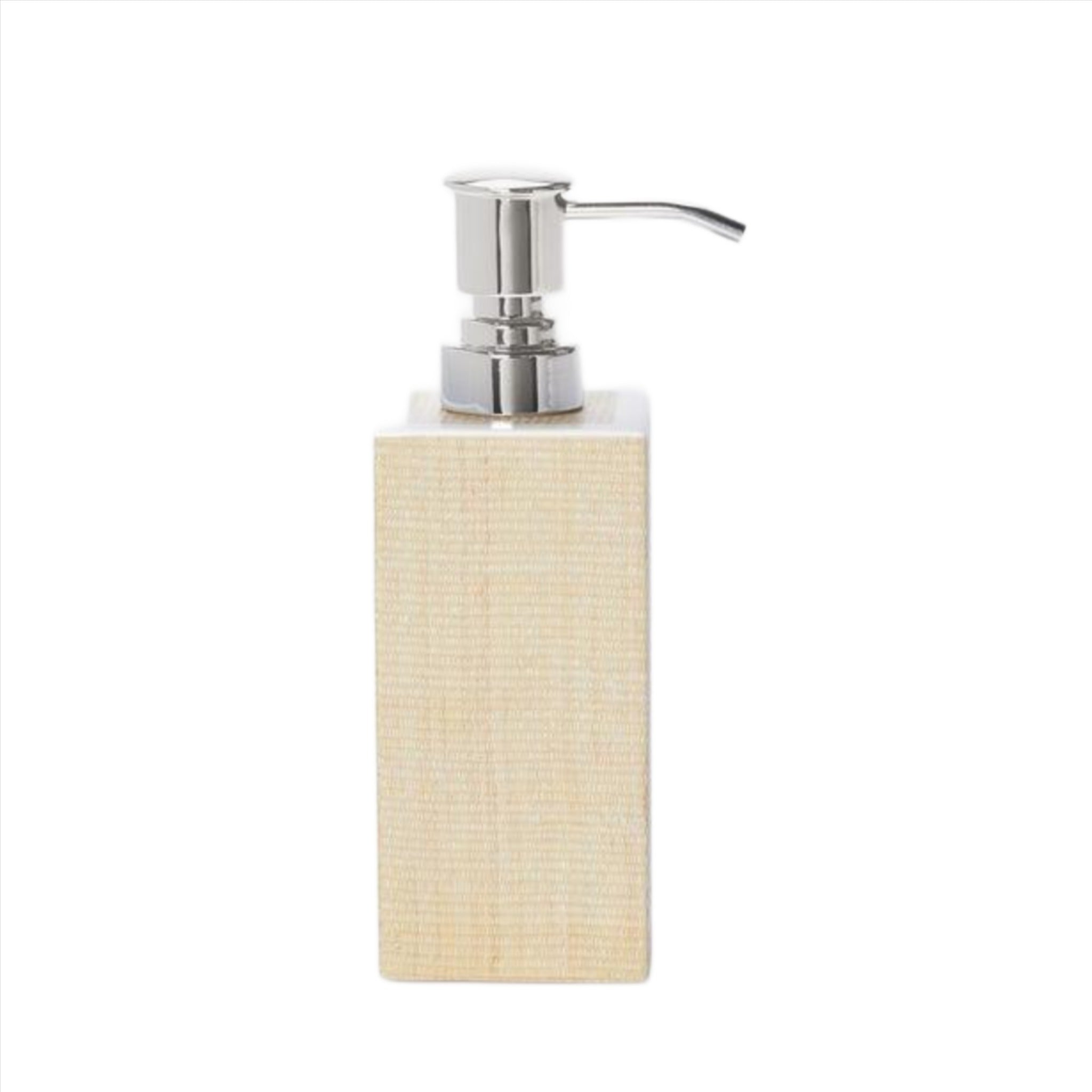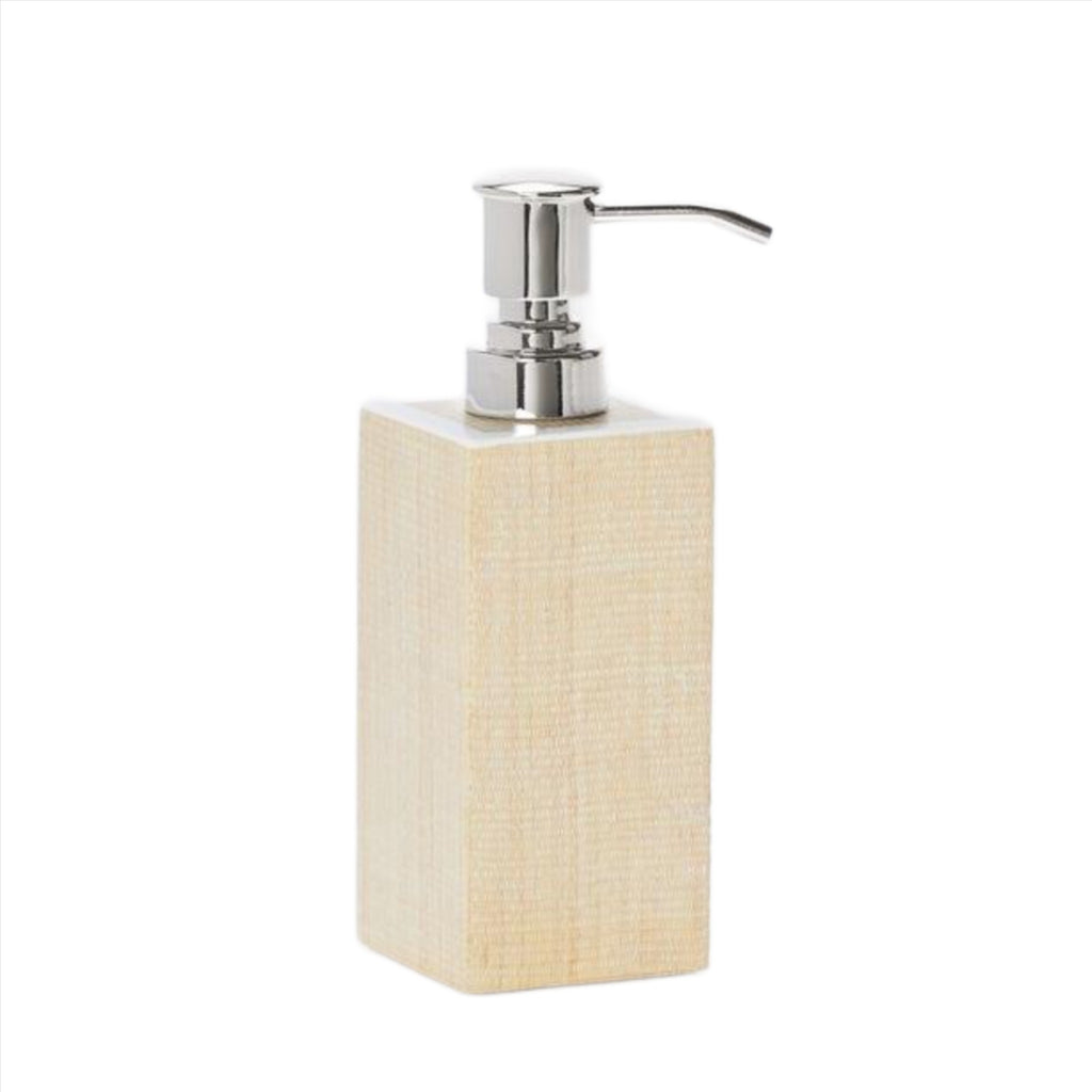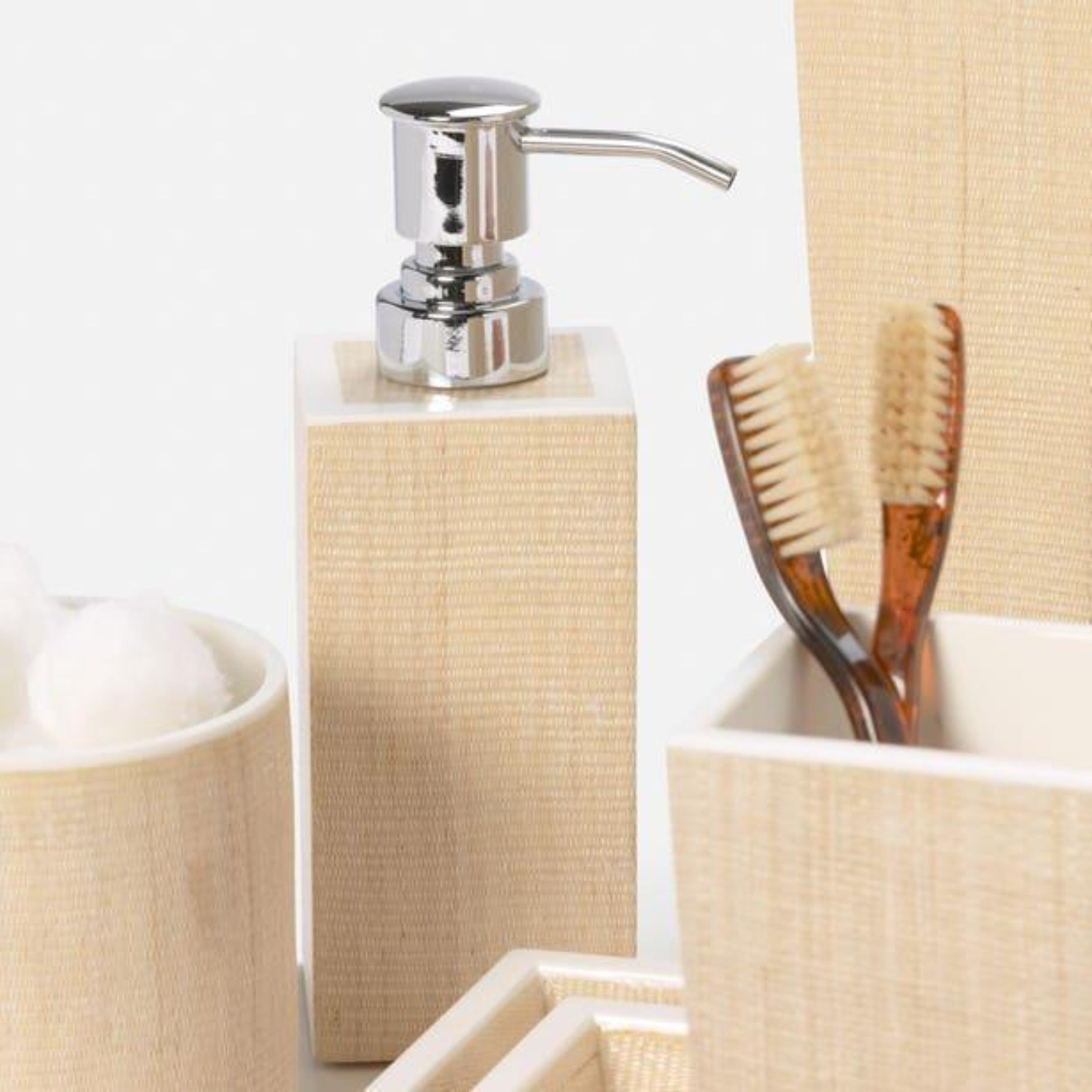 Abaca bath collection evokes serenity. Resin-coated and lined with painted wood. Measures: 2.5"L x 2.5"W x 7.5"H. Click on images for more details.