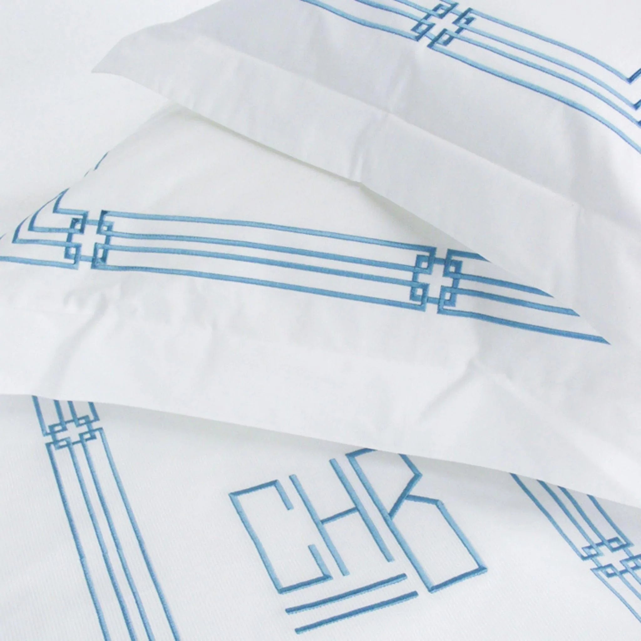 Our Carlton Bedding comes in crisp white 100% Egyptian Cotton with a French Blue embroidered border. Featuring a luxurious 330-thread count, this bedding collection is sure to give you a wonderful night's sleep.