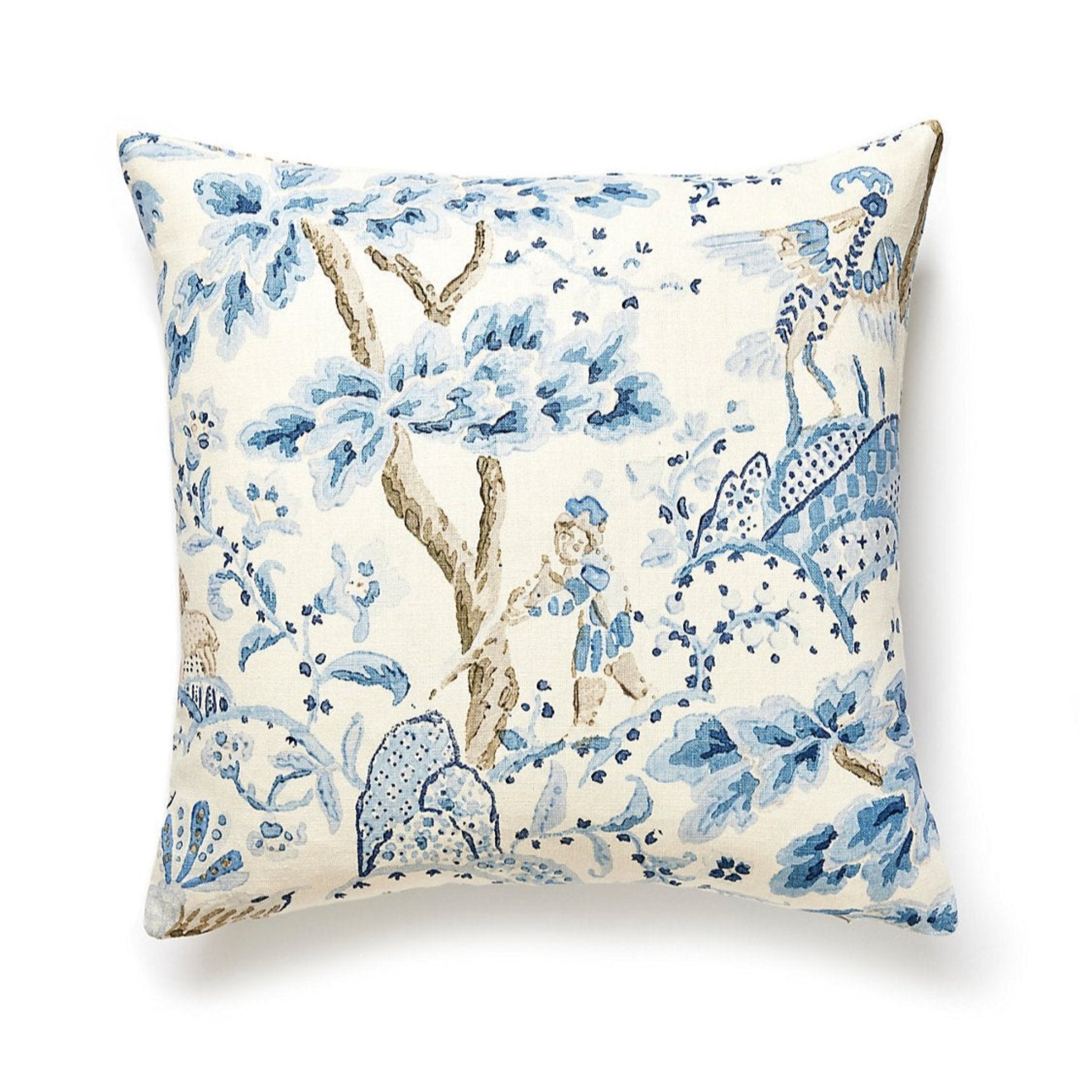 This blue chinoiserie pillow was thoughtfully curated and sewn together using the finest Scalamandre fabric with care in the USA.The beautiful scenery featured on this pillow will be a welcome addition to your home.