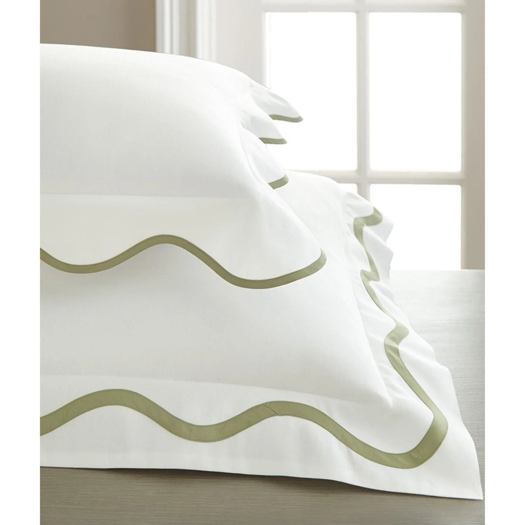 The Tess collection features a traditional scalloped tape design on fine long-staple cotton sheeting fabrics! These beautiful and elegant bedding sets are truly the perfect staple pieces for your bedroom.