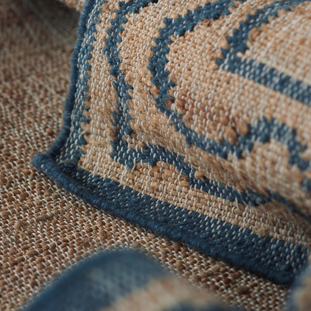Inspired by traditional Indian block and ikat patterns each rug is hand-woven with jute and wool fibers, giving them impeccable quality and natural base coloring due to the organic quality of the jute. Bring warmth into any space with the simple sophistication this collection's designs provide. Designed by Erin Gates.