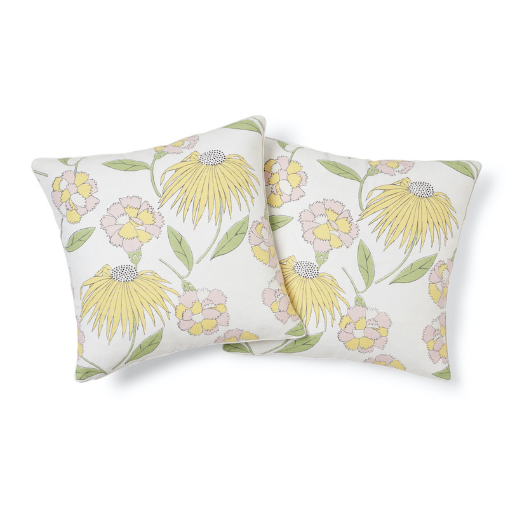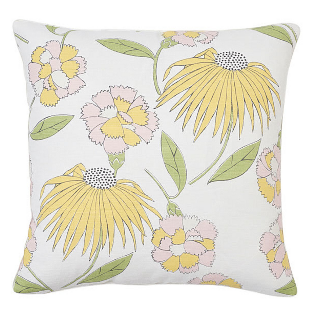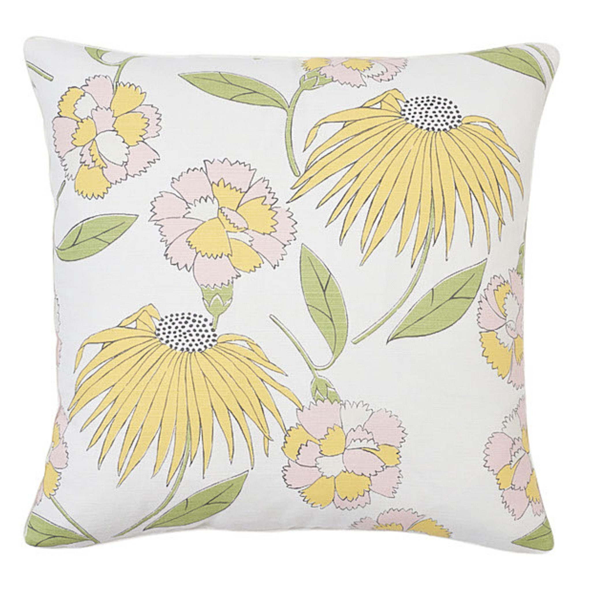 This pillow features Bouquet Toss by Celerie Kemble for Schumacher. Inspired by a vintage dress beloved by Celerie Kemble, this spirited, slightly retro floral pattern features just two blooms—and an airy feel, fresh look.