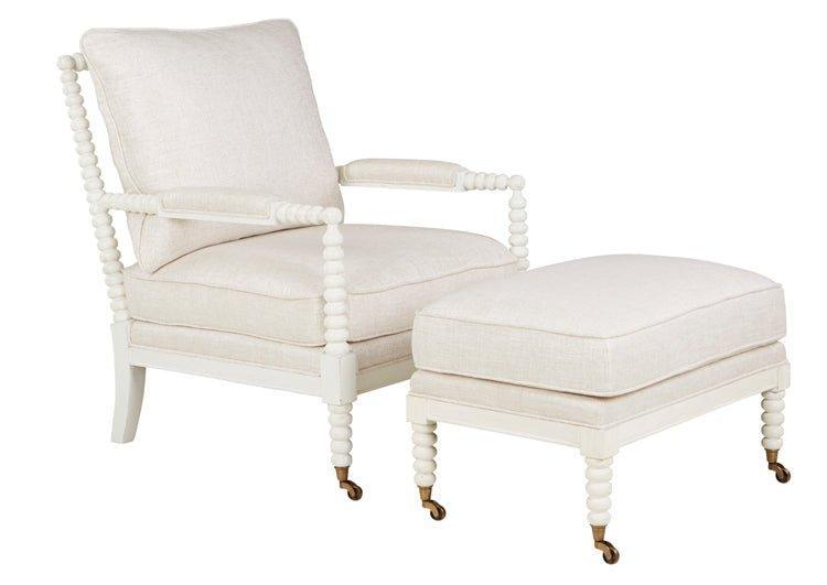 This upholstered occasional chair is available in many different finishes. Ottoman sold separately.