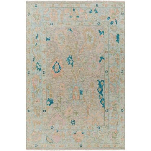 Ushak Light Pink, Blue, & Beige Hand Knotted Wool Area Rug