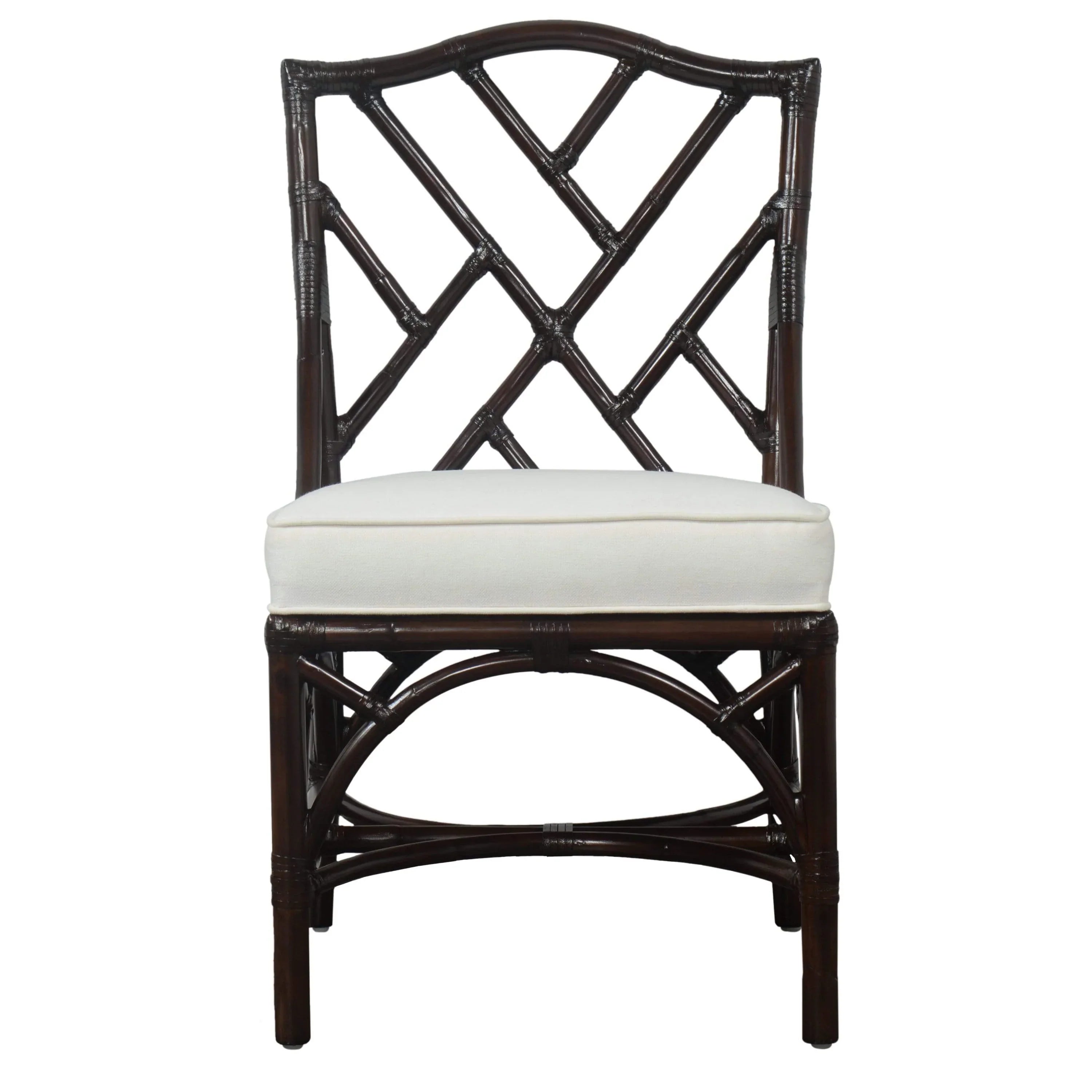 This lovely Chinese Chippendale Side Chair is perfect for your interior design or hospitality projects. The leather-wrapped joints and rich rattan frame are sure to enhance any room, regardless of style.