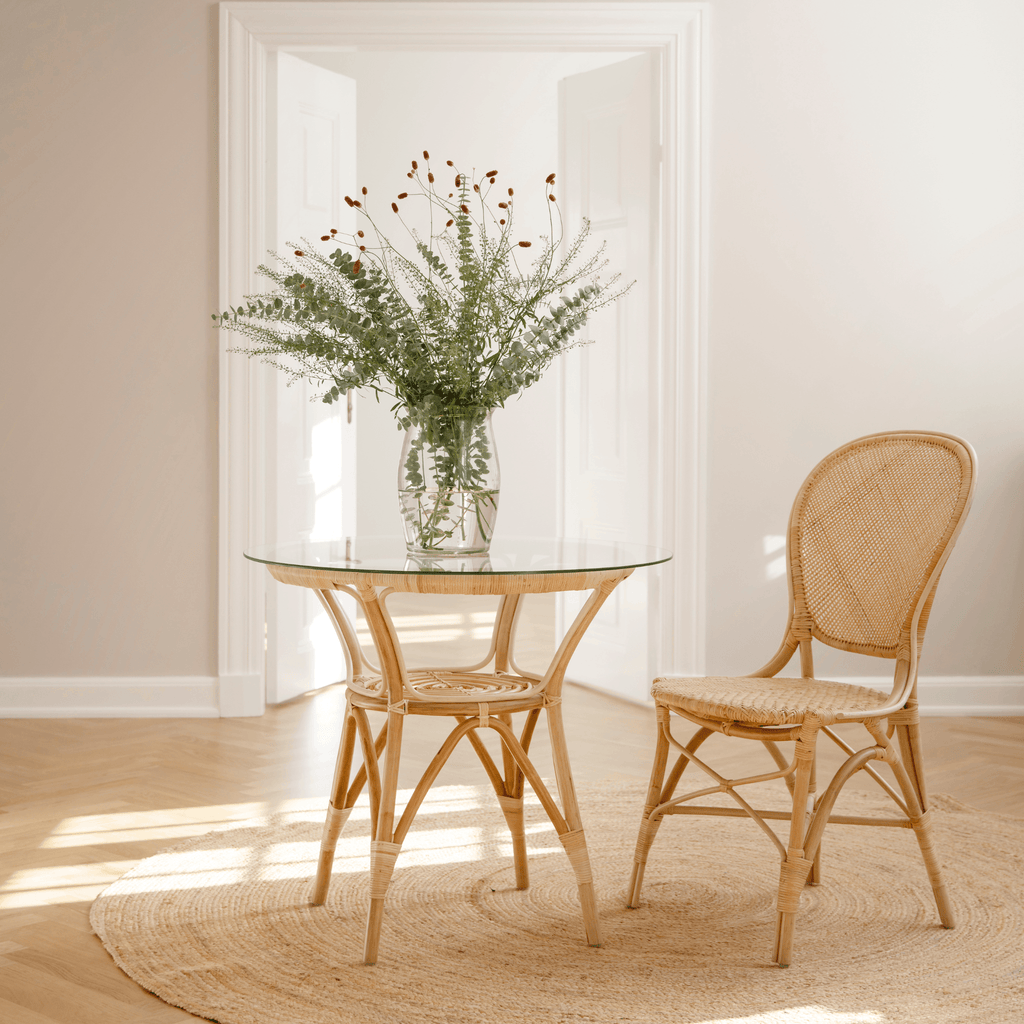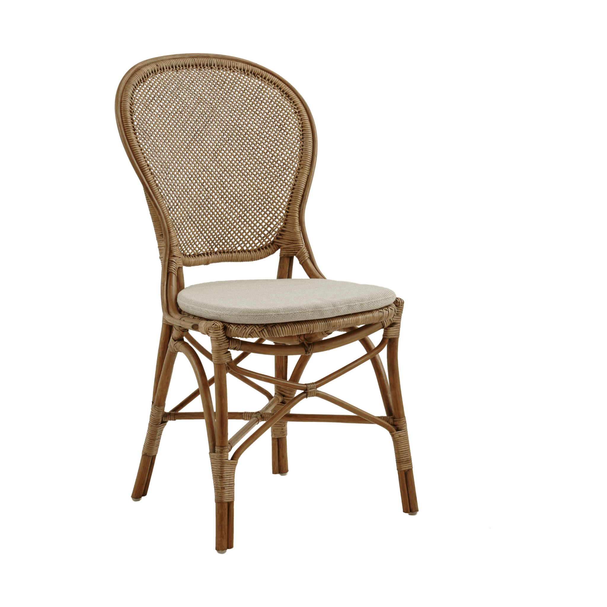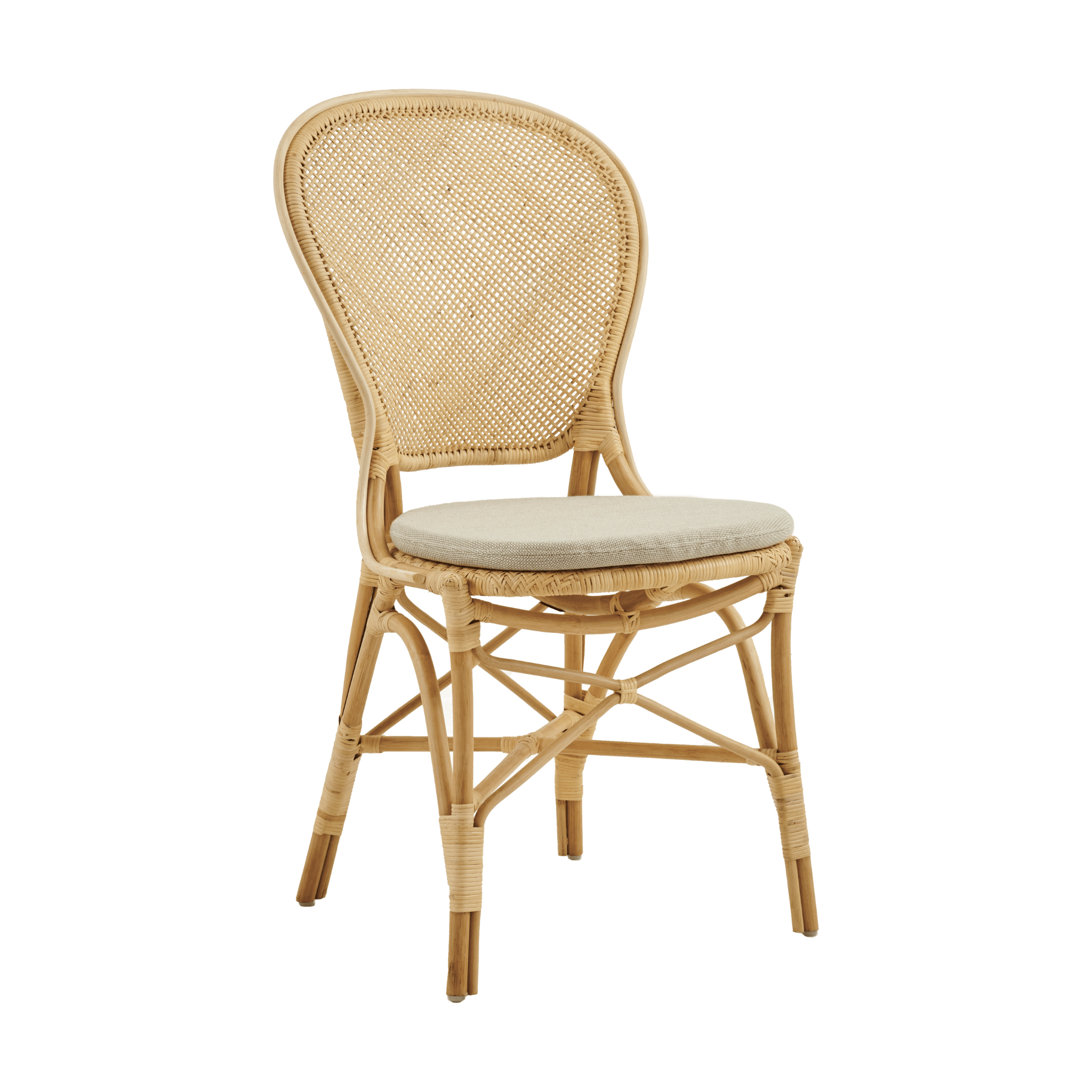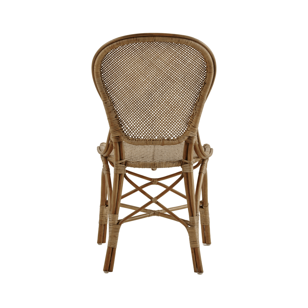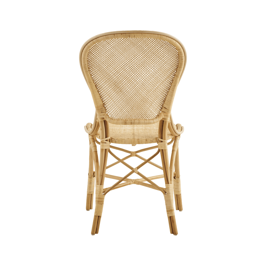 A classic indoor bistro chair. For decades, the original Rossini chair has been a coveted choice for use in private homes, among restaurants, and at French bistros and cafes all over the world. It is handcrafted from natural rattan and is built to last as long as its timeless design.