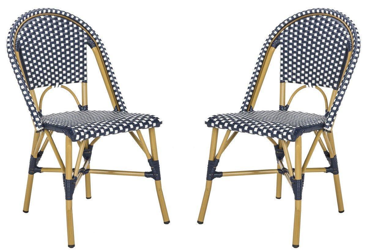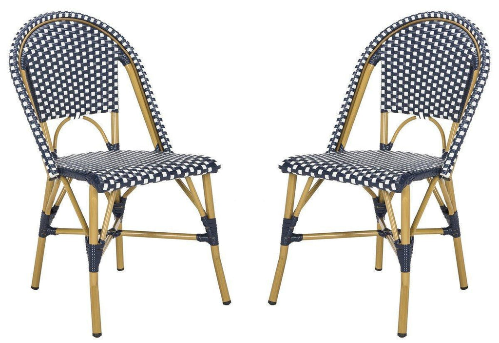 Navy and White Indoor-Outdoor French Bistro Stacking Side Chair