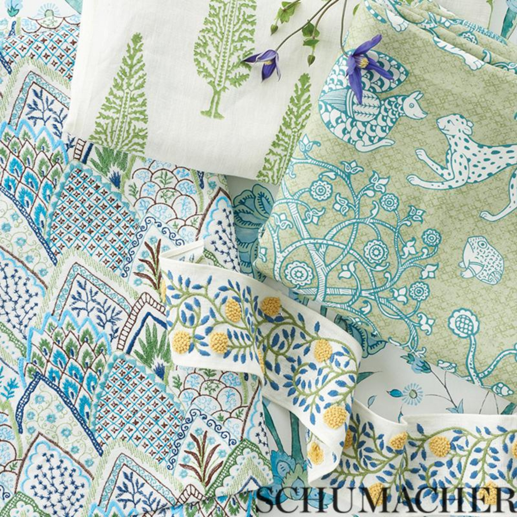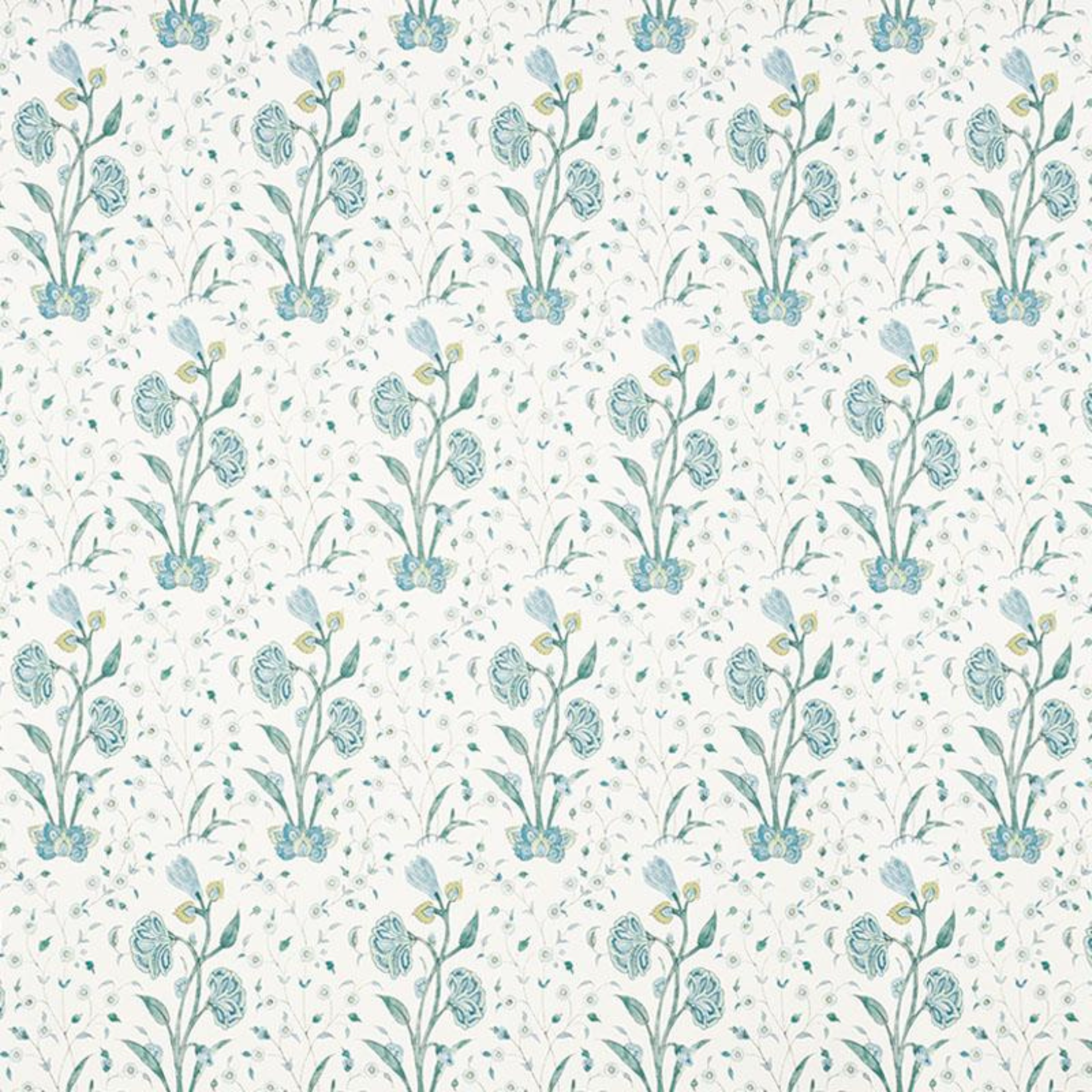 A simple, stylized floral inspired by traditional Indian motifs, this lovely, large-scale pattern has the nuanced look of a hand block print.