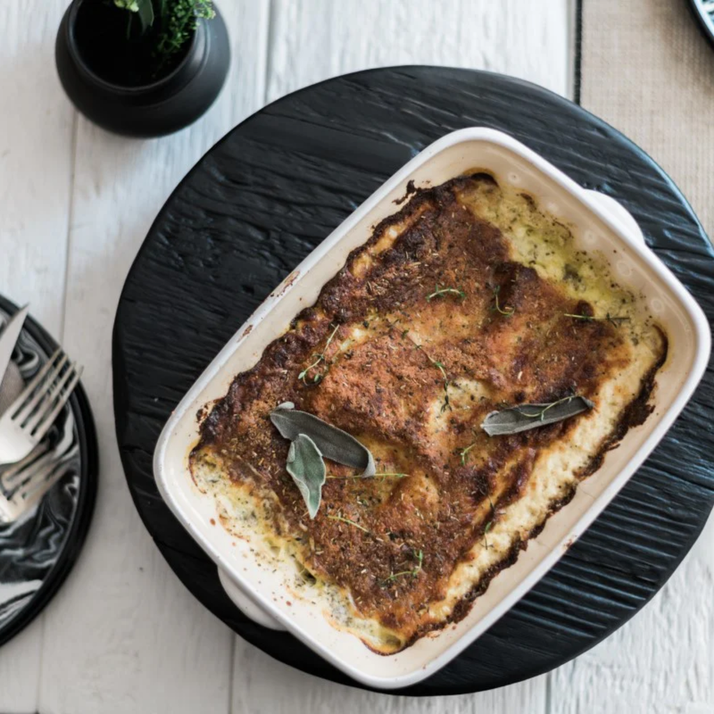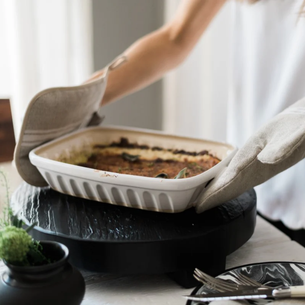 These stoneware bakers have endless possibilities and can also be used for serving as it moves from the oven to the table seamlessly without the need to transfer your meal to another dish.