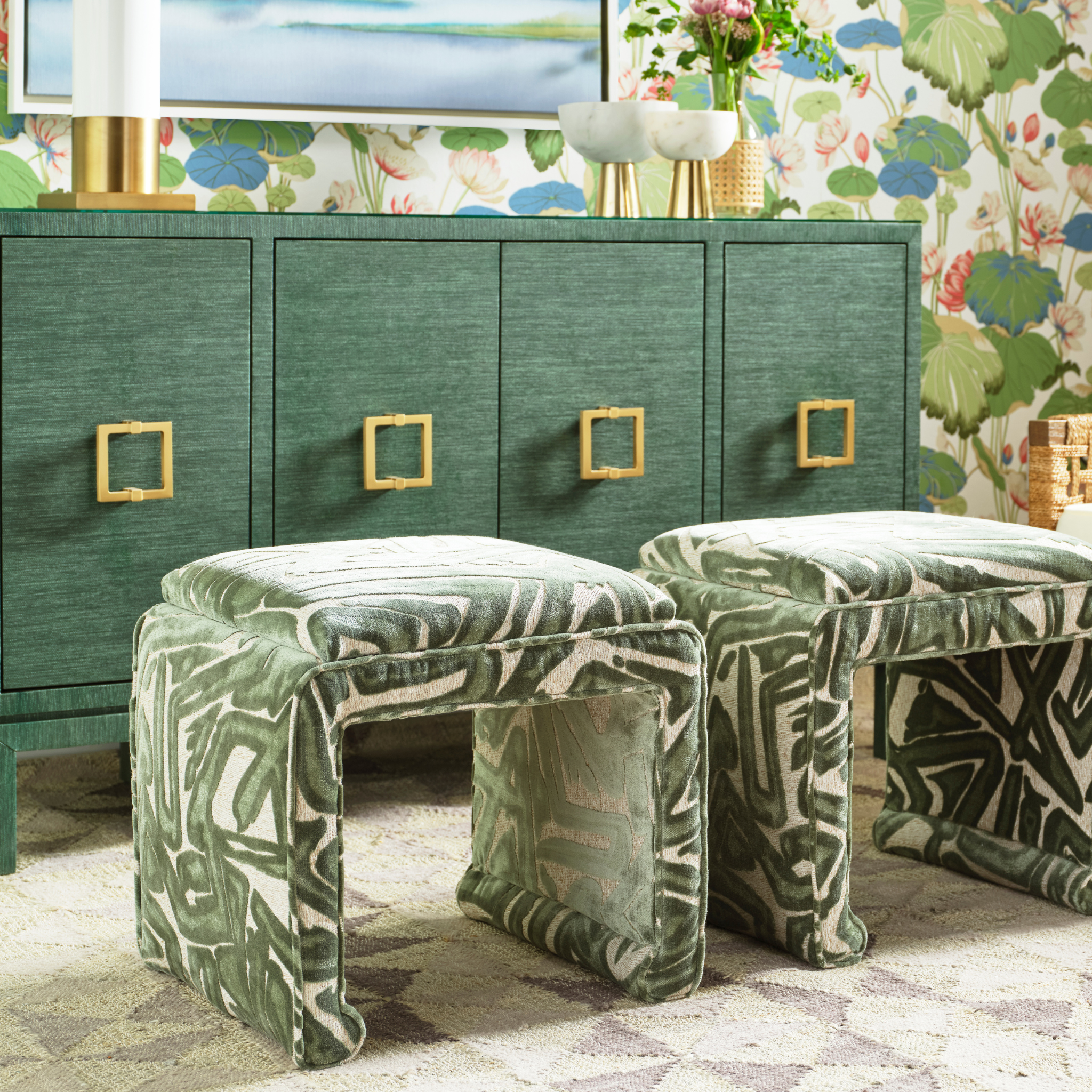 • Finish: Blue Grasscloth, Green Grasscloth, or White Grasscloth