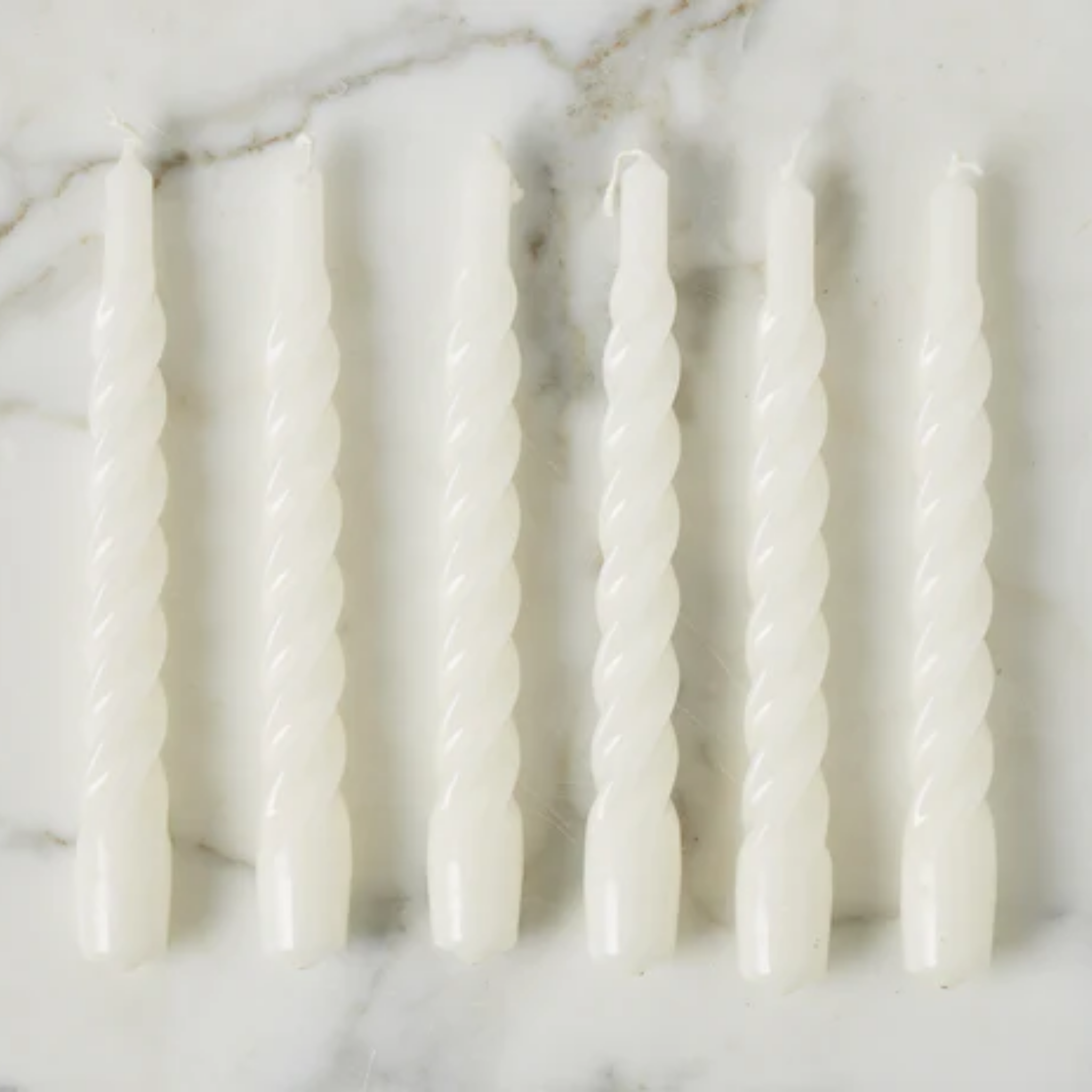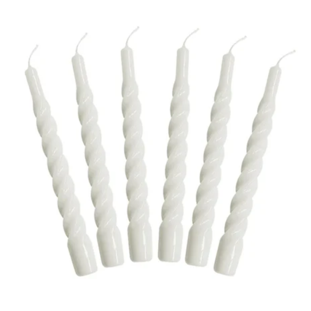 Set of Six White Twisted Taper Candles