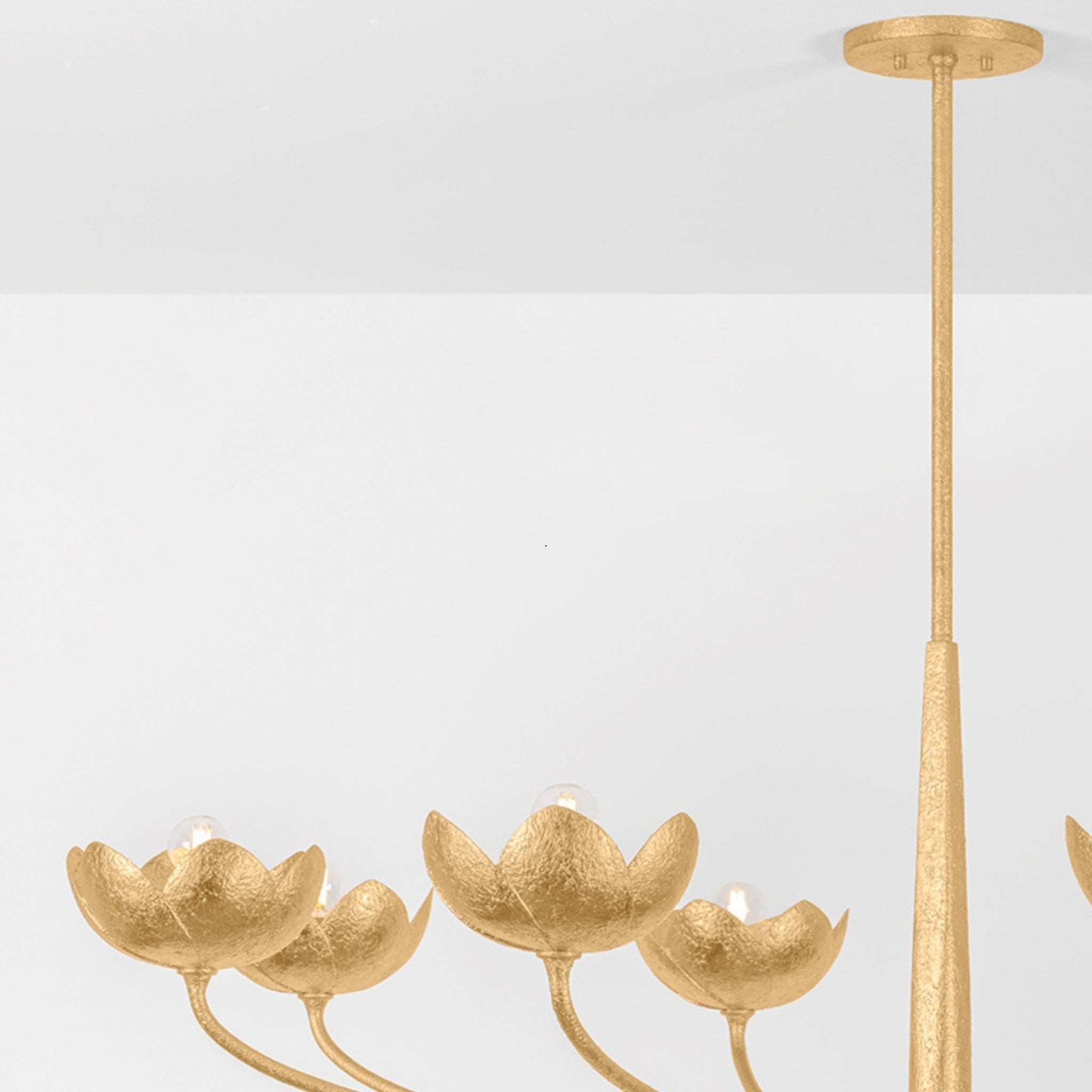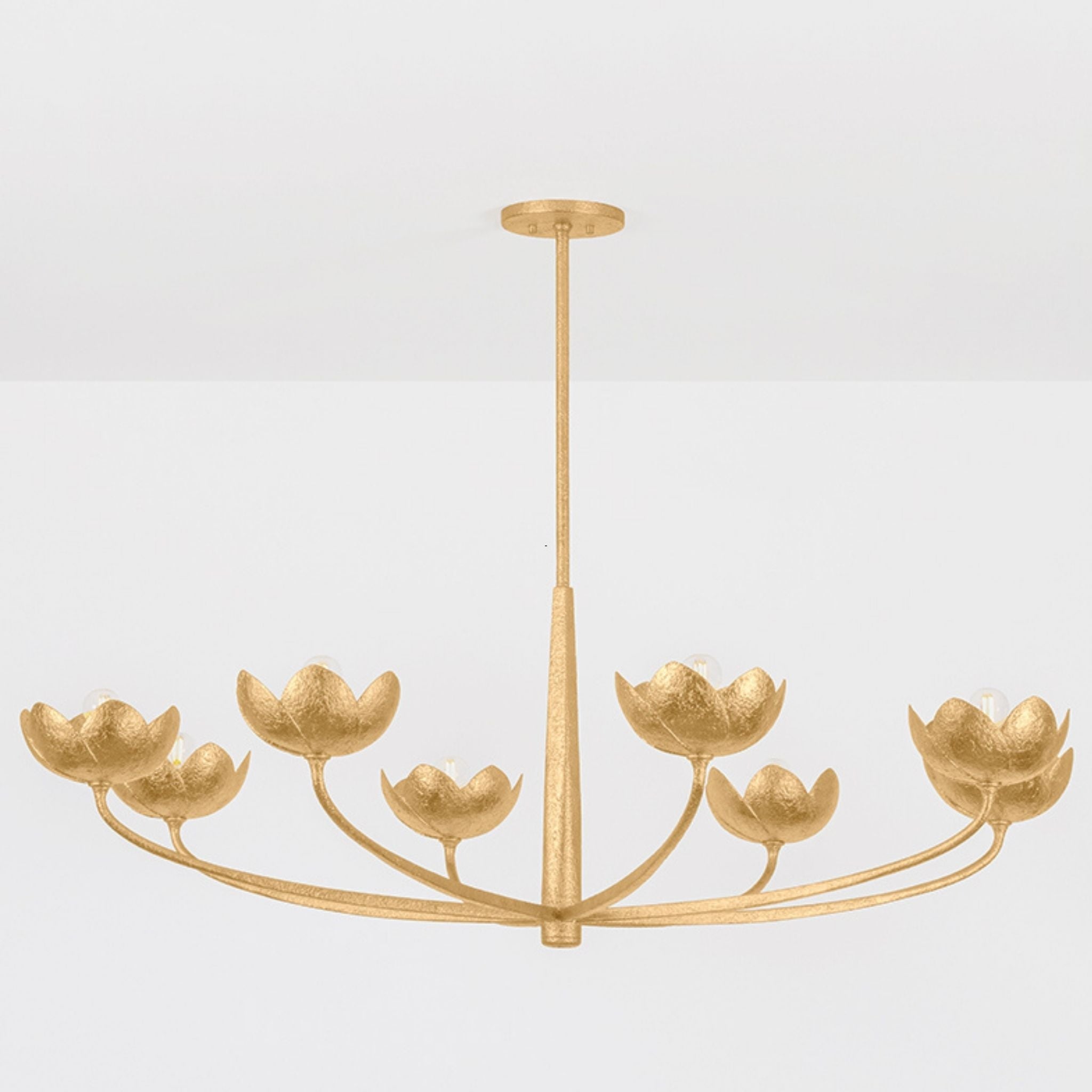 A fresh take on a botanic motif, the Arcata family features sculptural, romantic silhouettes with highly tactile, hand-worked finishes. The gentle sweeping arms transition from square to round, creating a dynamic look that complements the floral forms.