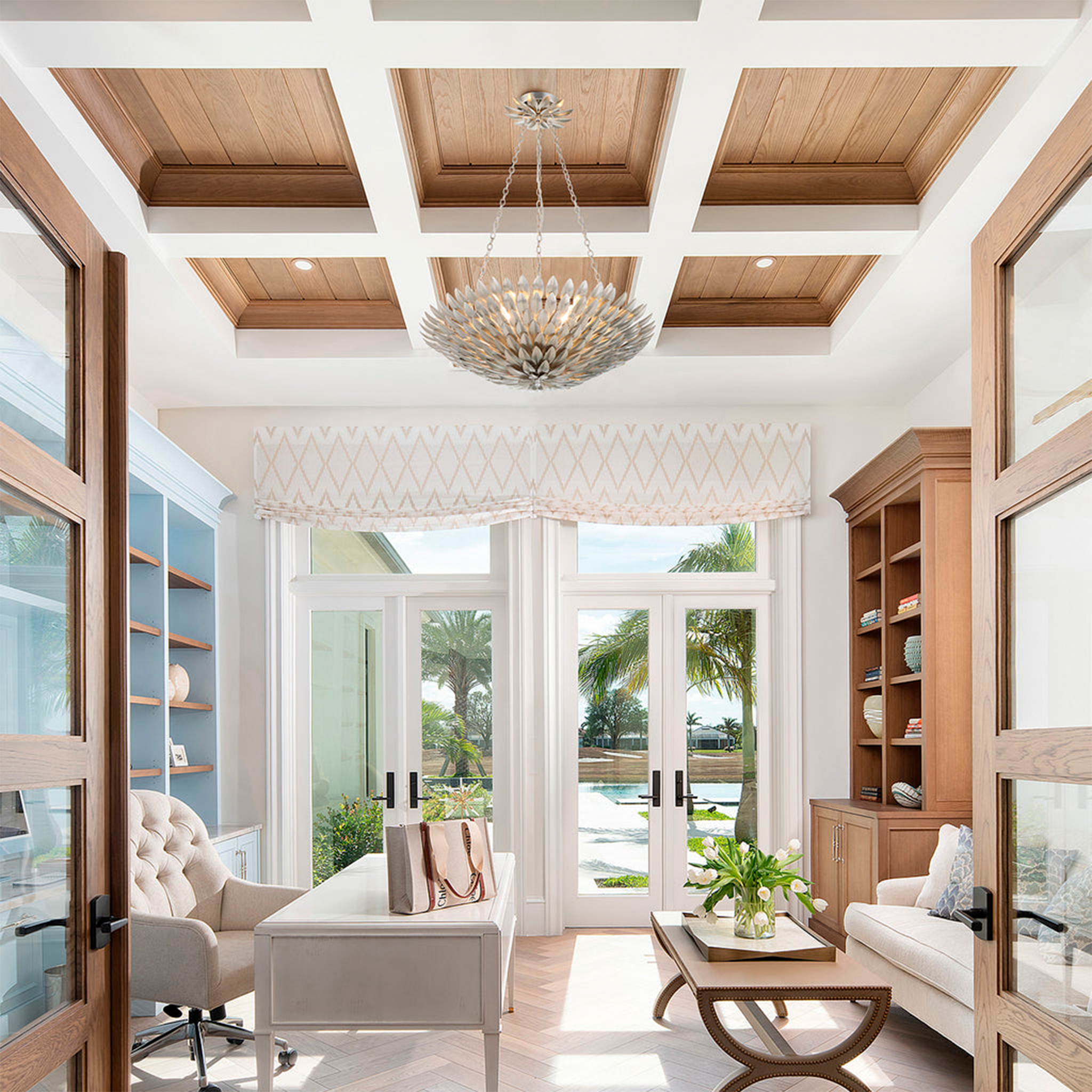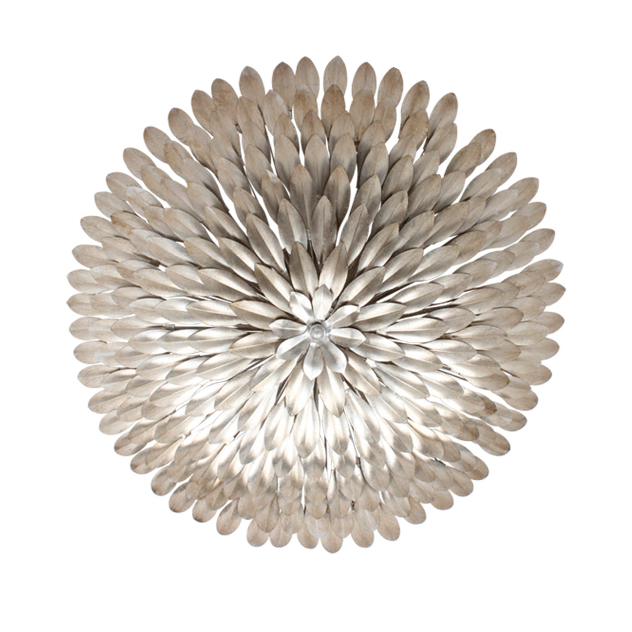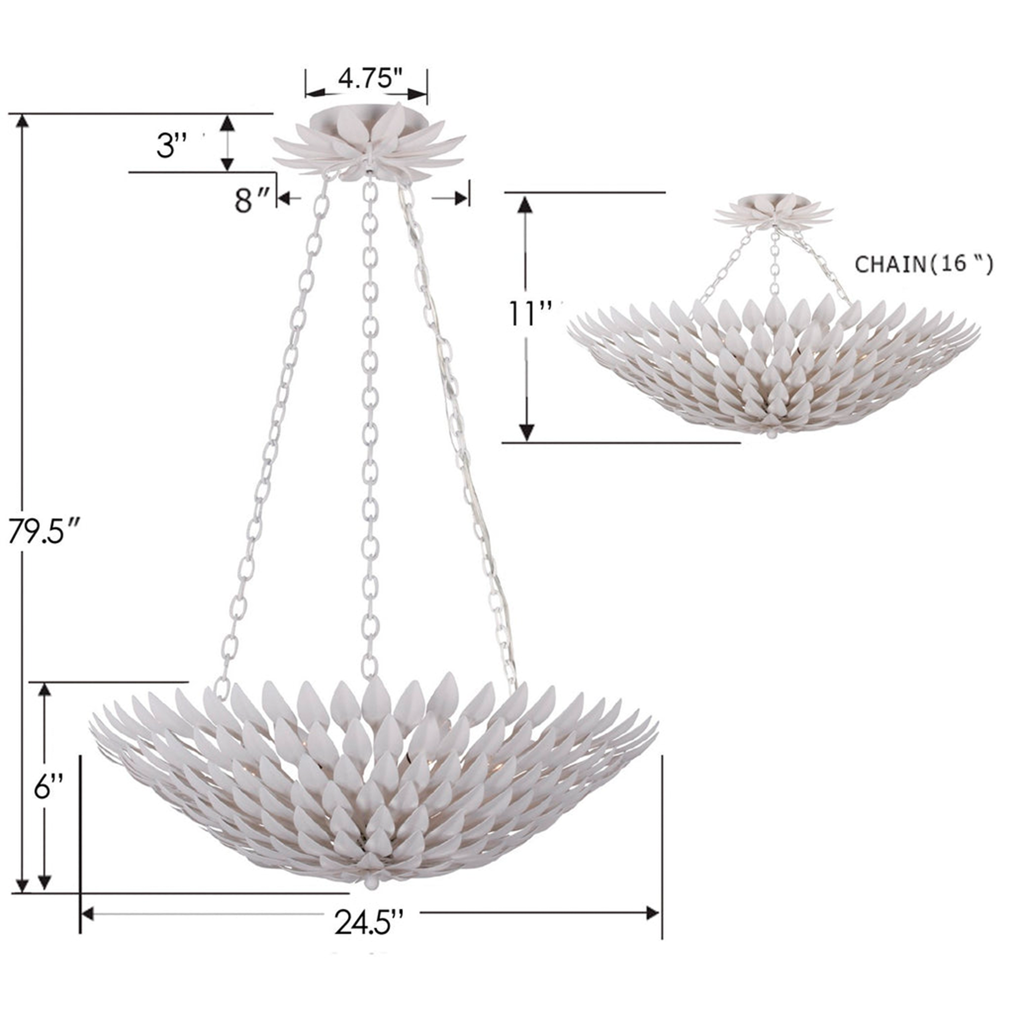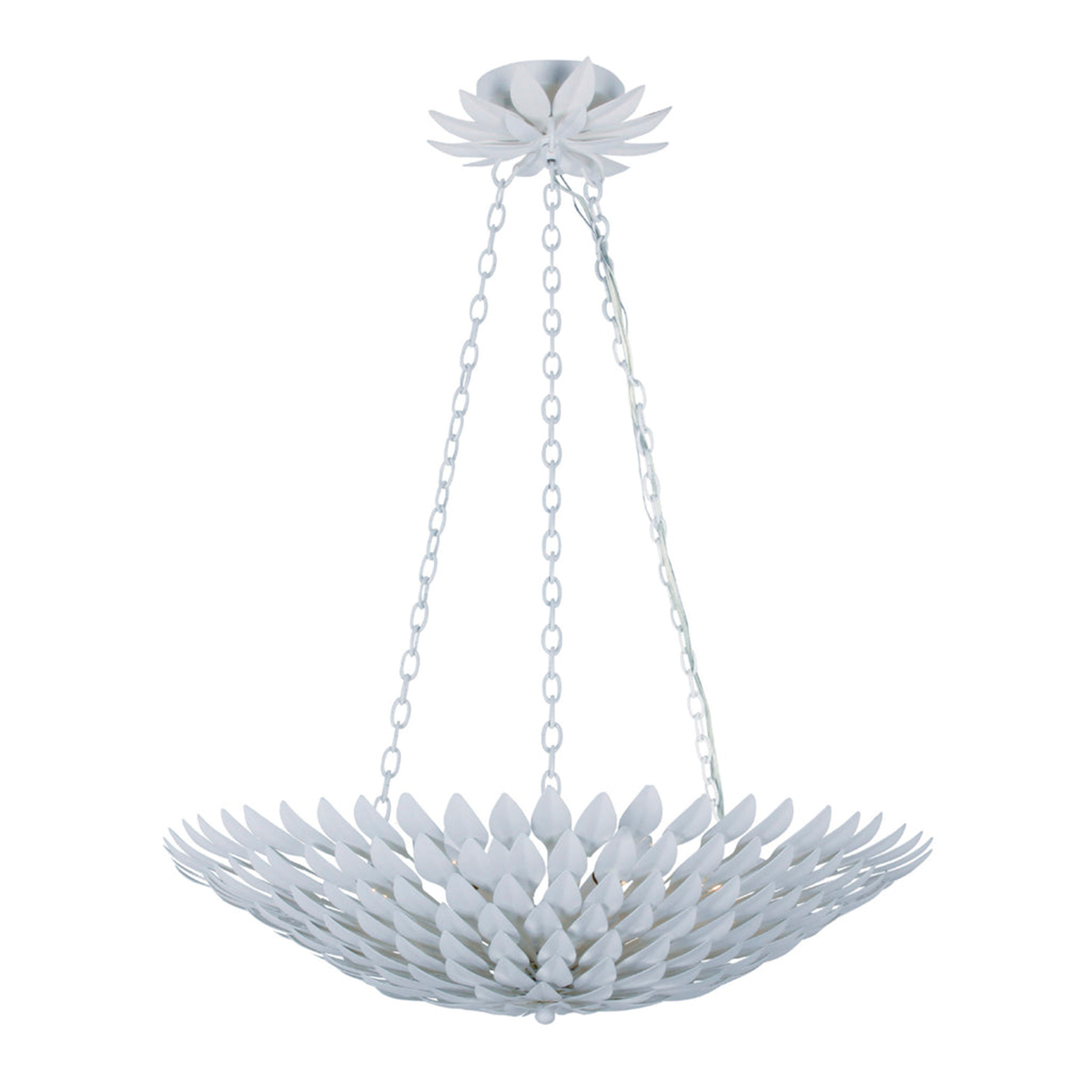 The Broche 6 Light Chandelier captivates with its nature-inspired design, featuring layers of hand-painted metal leaves in an elegant, sculptural form.