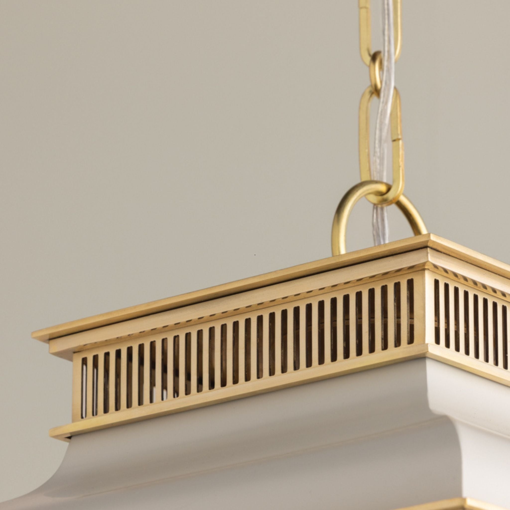 Blending traditional lines with fresh, mixed finishes, the Houghton lantern family exudes timeless elegance. Notable details include Mark D. Sikes’ signature ball accent at the center of the candelabra and perforations on the shades. Complemented by warm Aged Brass accents, the classic silhouette ensures Houghton fits into any interior space with ease.