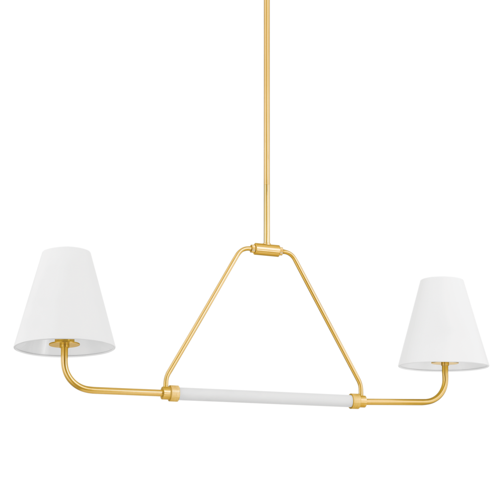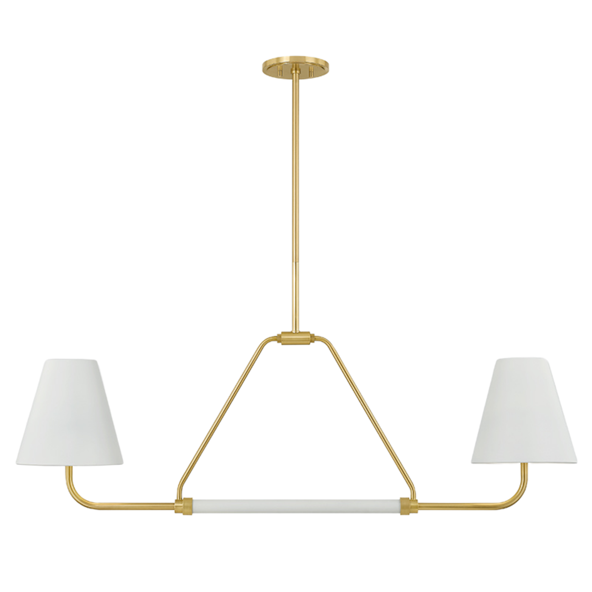 Leaning into traditional aesthetics, Georgann features clean lines and tapered shades with gently curved arms. Both its sconce and linear forms come with a Soft White and Aged Brass finish, providing a sense of classic beauty that melds with existing decor. As a floor lamp, it is finished in a moody green hue that adds a fresh dose of color to any room. Part of our Zoe Feldman collection.