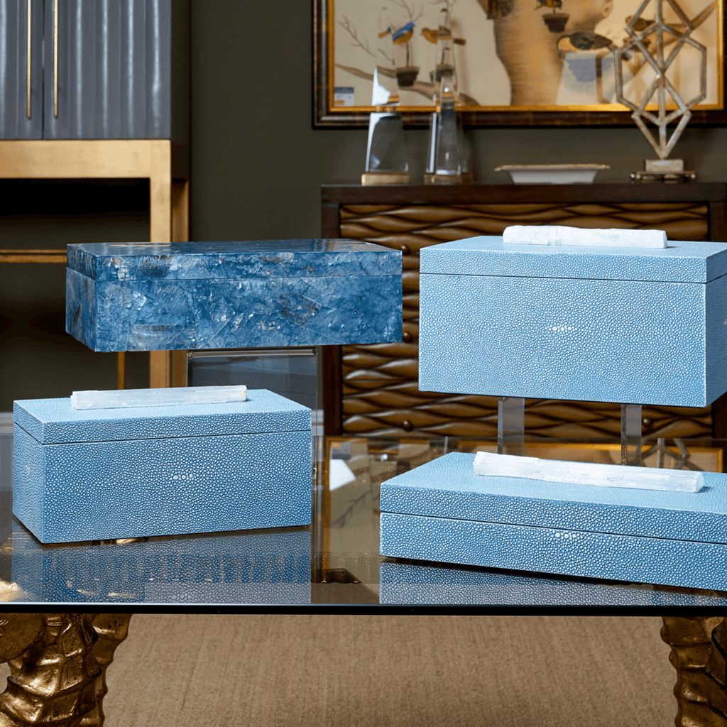 Light Blue Shagreen Jewelry Box With Rock Crystal Handle