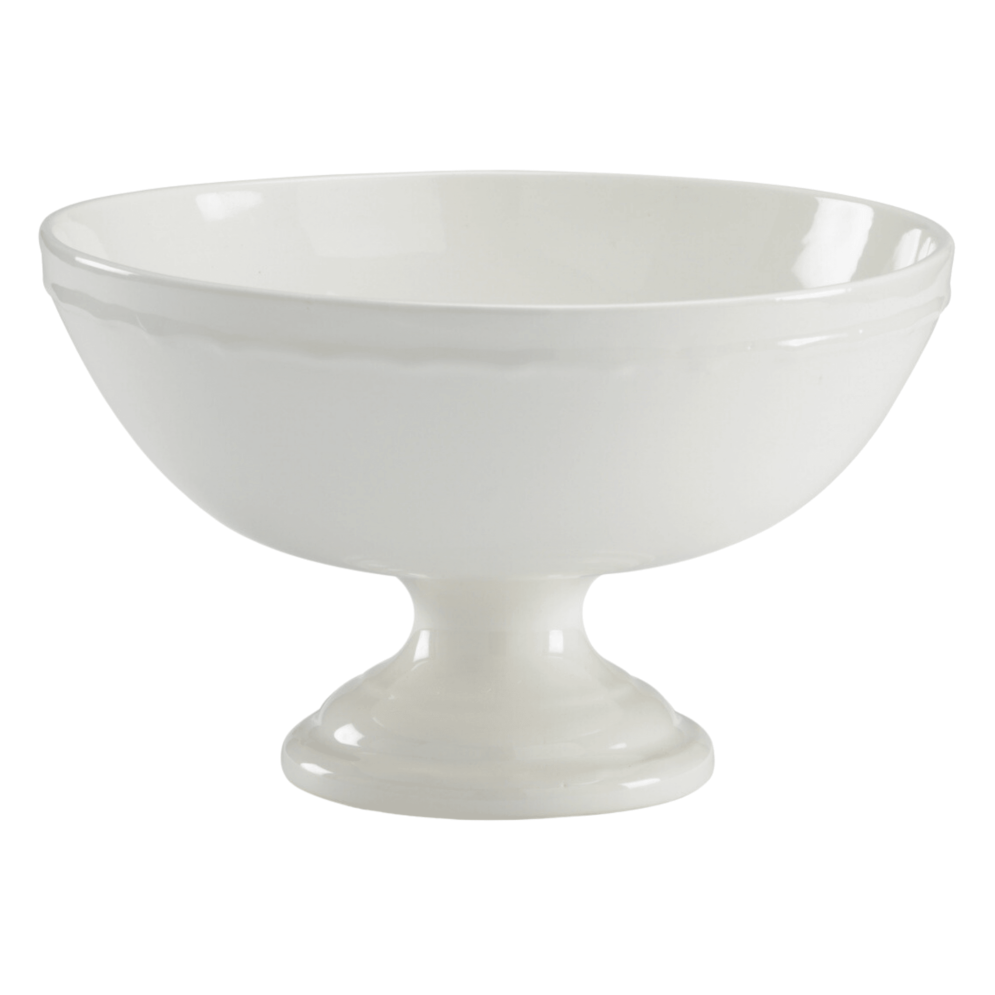 Featuring a classic silhouette, our pedestal centerpiece bowl is a versatile piece for your home. The sleek off-white glazed porcelain piece is perfect for holding fruit in your kitchen or floating flowers on your dining room table. Body Dimensions: 8.5h x 14w x 14d. Mounting Dimensions: 6.5w x 6.5d. Click images for more detail.