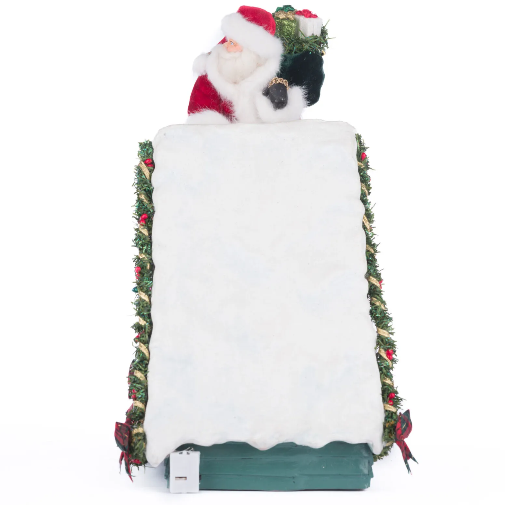 - Velvet-covered Santa with bag filled with presents