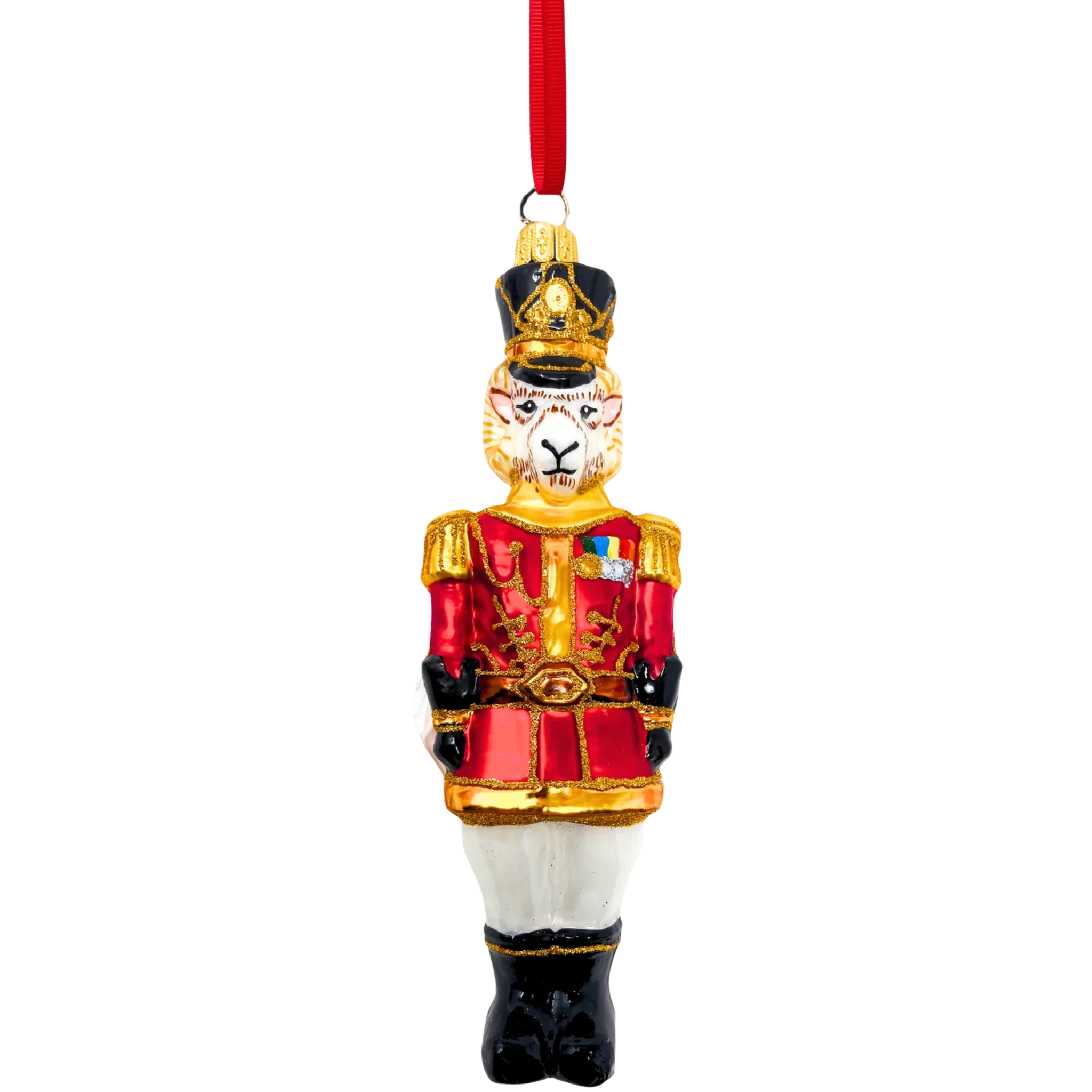 This unique ornament features a proud ram with stately posture, clad in the iconic red coat and tall bearskin hat of the Queen’s Guard. Hand-painted accents and a glossy finish bring character and charm to every detail. Perfect for collectors or anyone looking to add a touch of regal whimsy to their Christmas tree, this ornament is sure to stand at attention all season long.