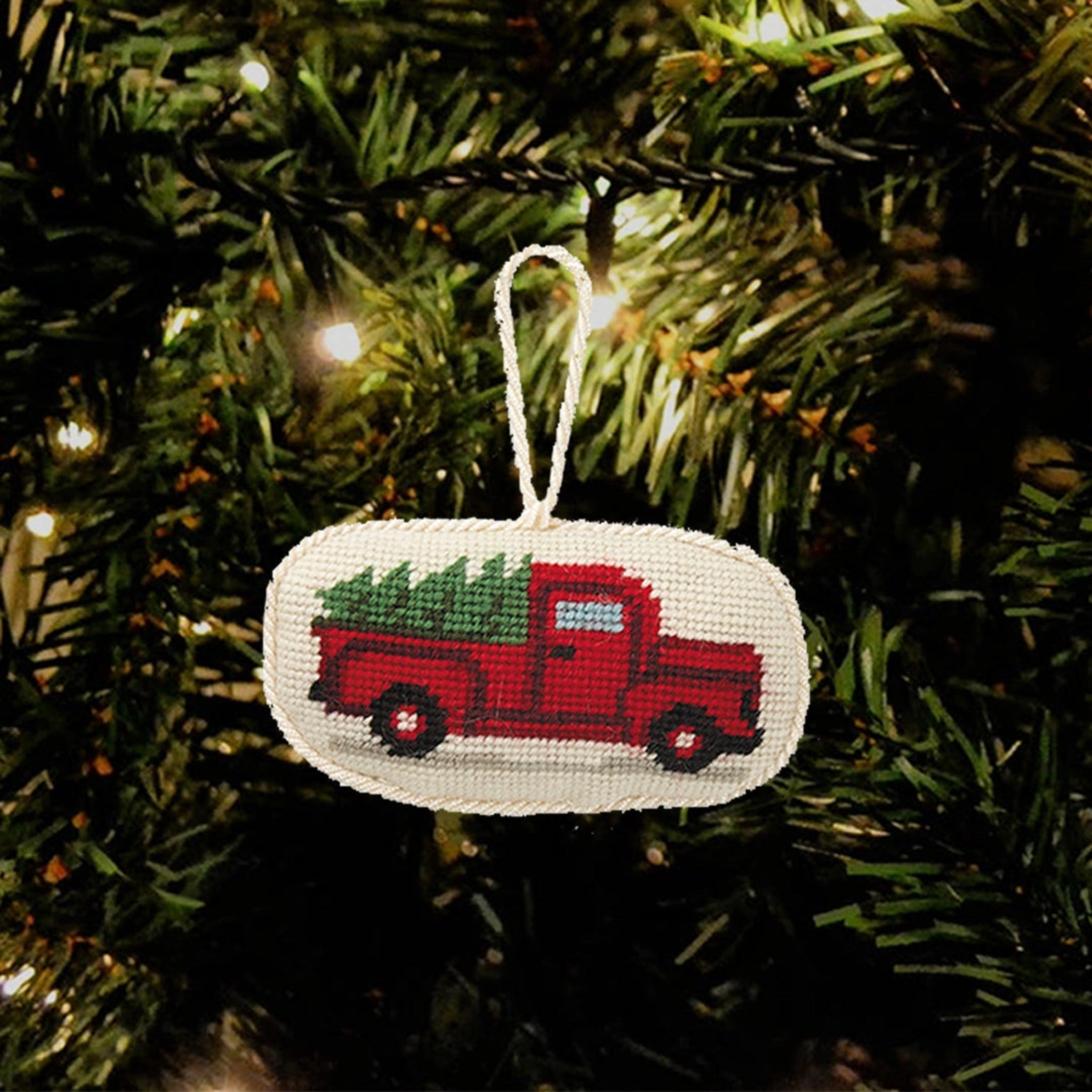 Tree On Truck Needlepoint Ornament