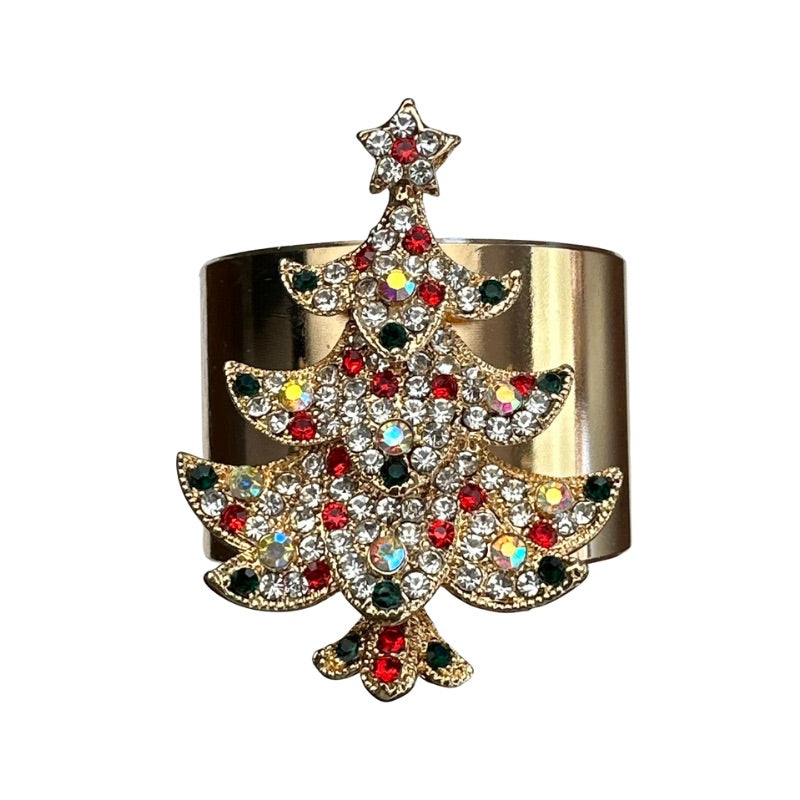 Add the perfect sparkling finishing touch to your holiday tablescape! Our Studio Collection: Christmas Tree Napkin Ring is a luxury piece that is substantial in feel and weight. The design is welded to the ring.