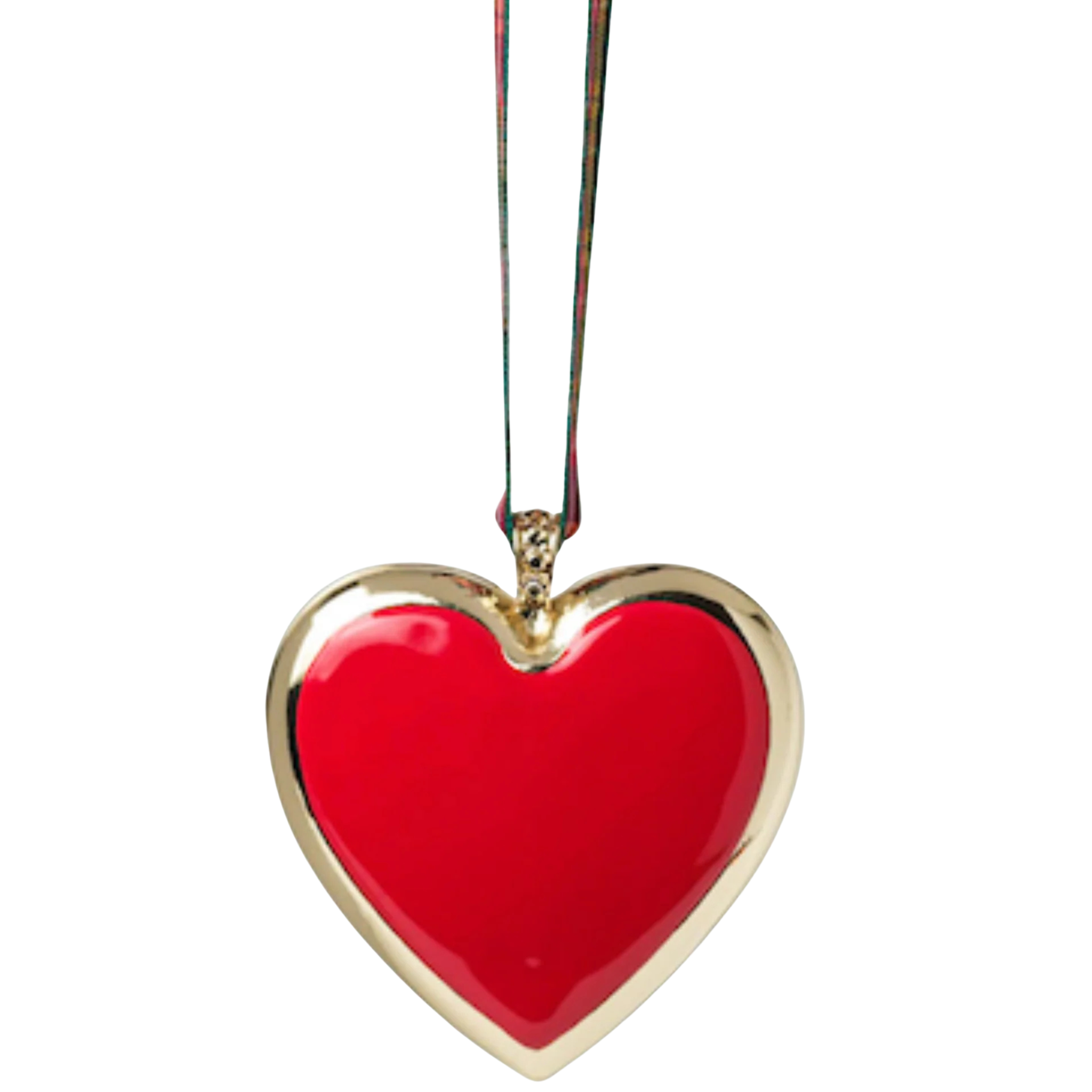 This ornament is a charming and festive addition to your holiday decor. Crafted from durable zinc with a glossy enamel finish, the heart shape is a bold and vibrant red, symbolizing love and warmth. It’s beautifully paired with a classic tartan ribbon, adding a cozy, traditional touch. Perfect for hanging on your tree or as a sweet decorative accent, this ornament brings a classic holiday spirit to any space.