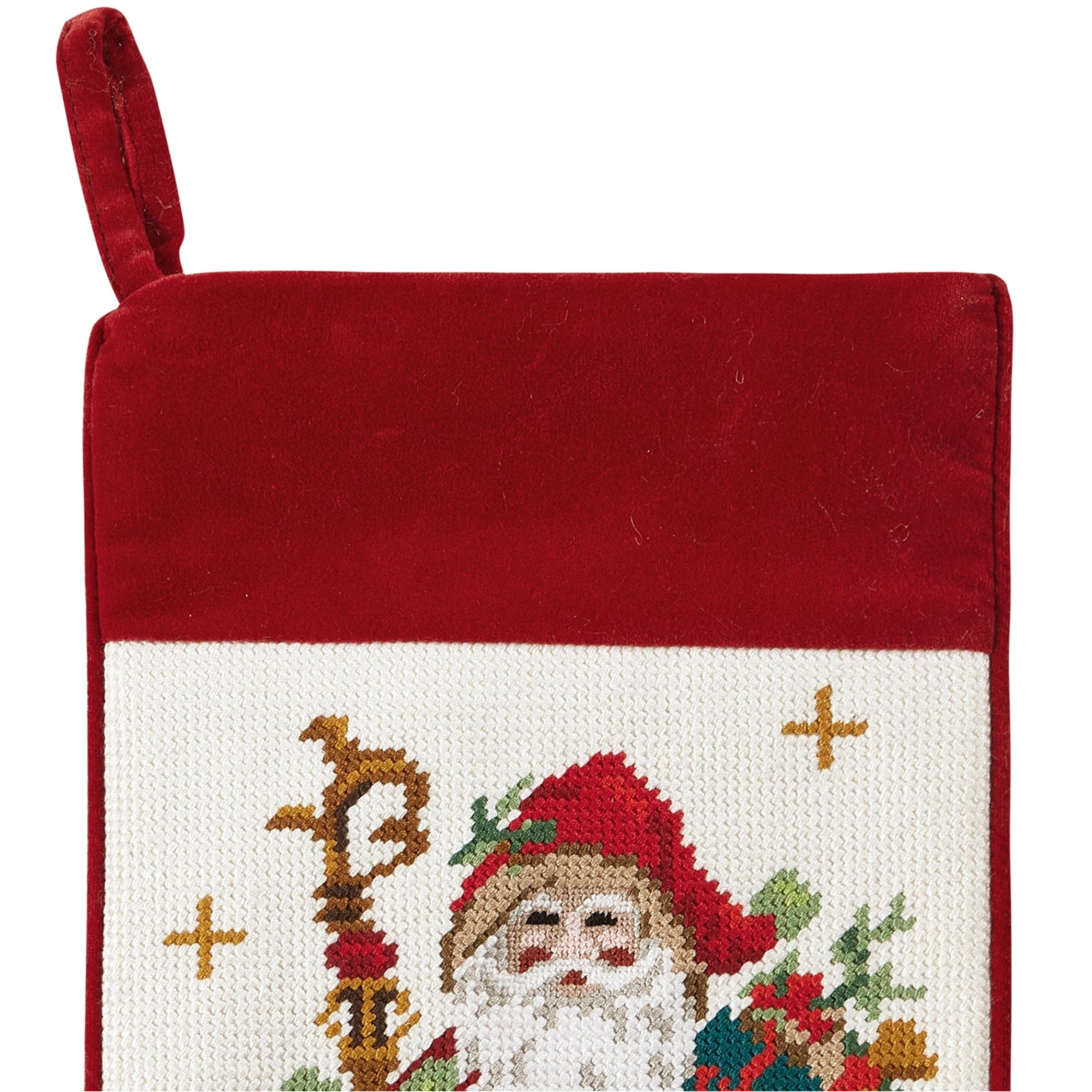 • Embroidered needlepoint style stocking