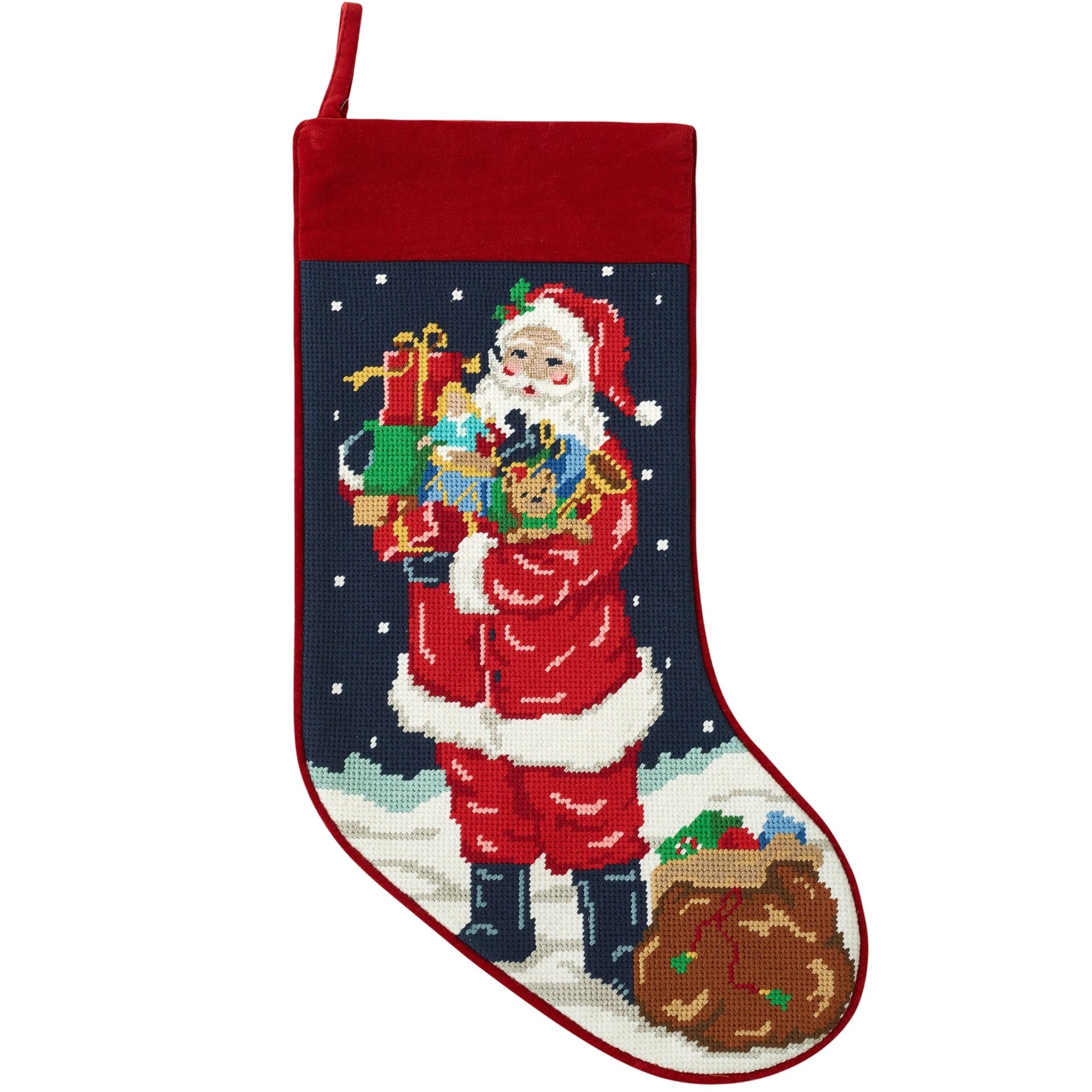 Bring the magic of Christmas to your home with this Santa with Toys Embroidered Stocking. Featuring a cheerful Santa carrying a sack full of colorful toys, expertly embroidered on soft fabric, this stocking adds classic holiday charm to any mantel. It’s perfect for filling with festive treats and gifts year after year.