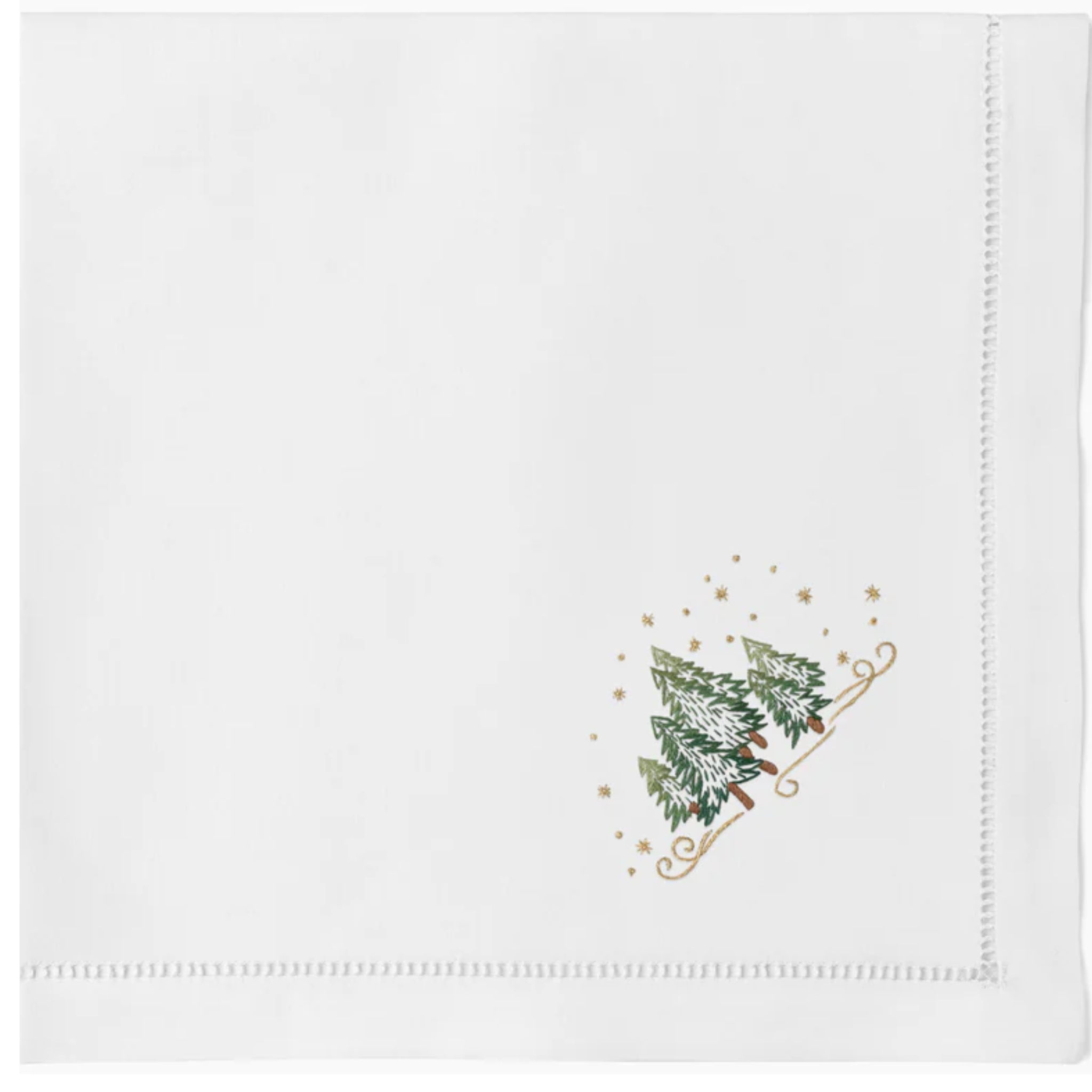 Add festive cheer to your holiday party or surprise your hostess with these lovely Pine Tree dinner napkins. Hand-embroidered, finished and hemstitched by hand. Click image for greater detail.