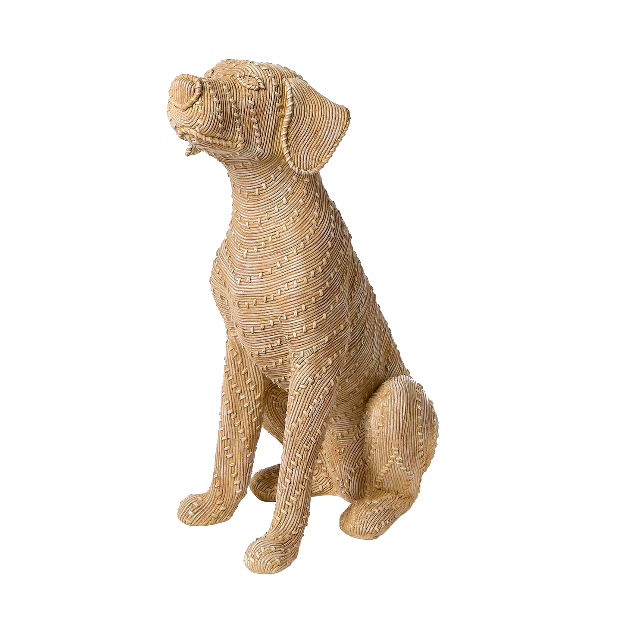 The Basket Weave Pattern Sitting Dog is a decorative resin figurine crafted in lifelike form, seated in repose with attentive posture. Its surface features an intricate basket-weave texture, lending visual depth. At approximately 18" tall (8½" W × 12" D), it adds whimsical charm to any space.