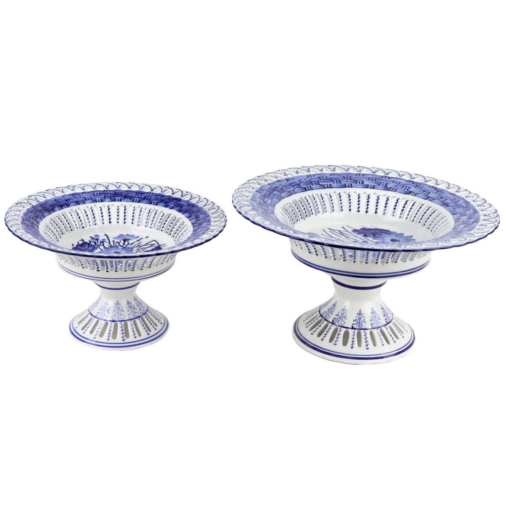 Blue and White Pierced Pedestal Bowl