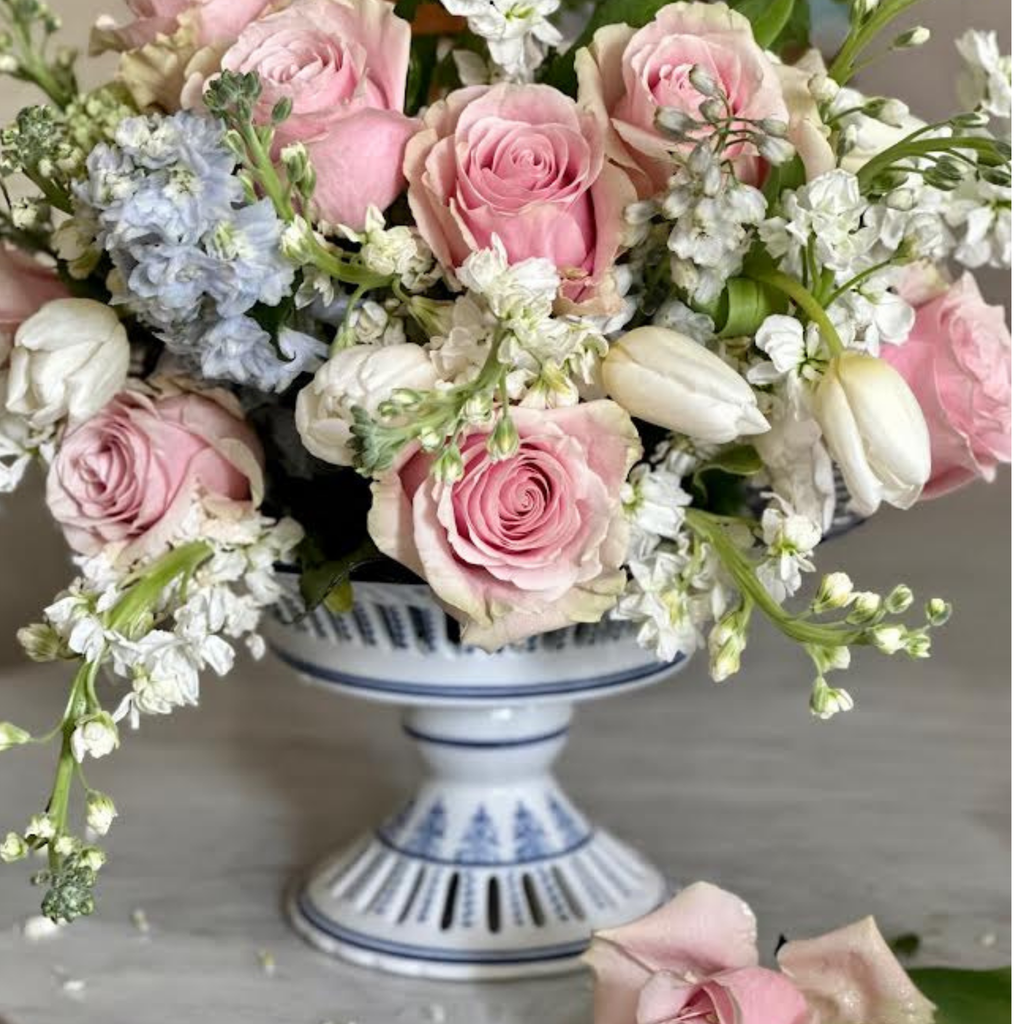 Gorgeous pierced Pedestal Bowl is perfect as a centerpiece dish, or to be filled with flowers, candy, or fruit. ! Lovely pierced and woven detailing with floral center on this delicate porcelain footed bowl.