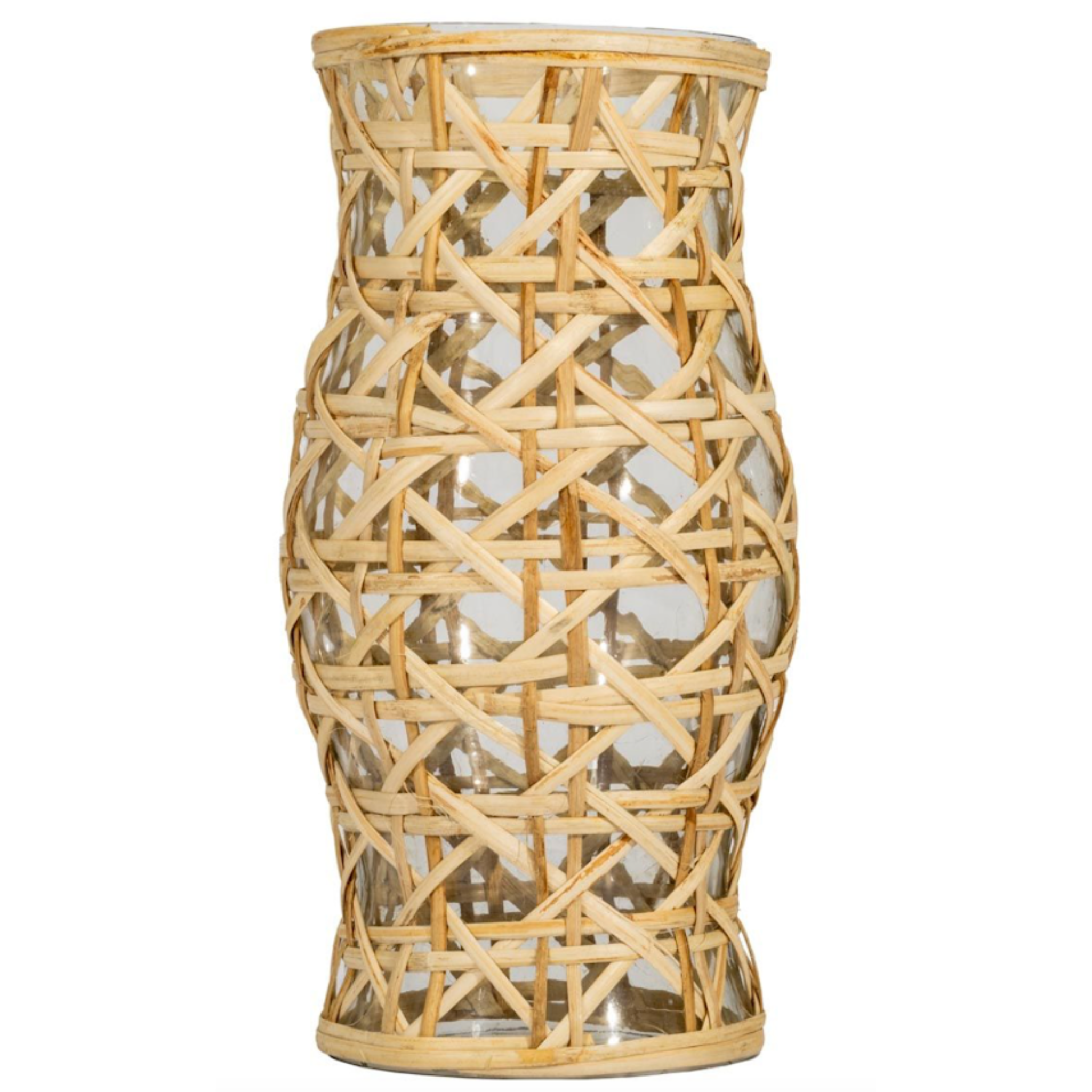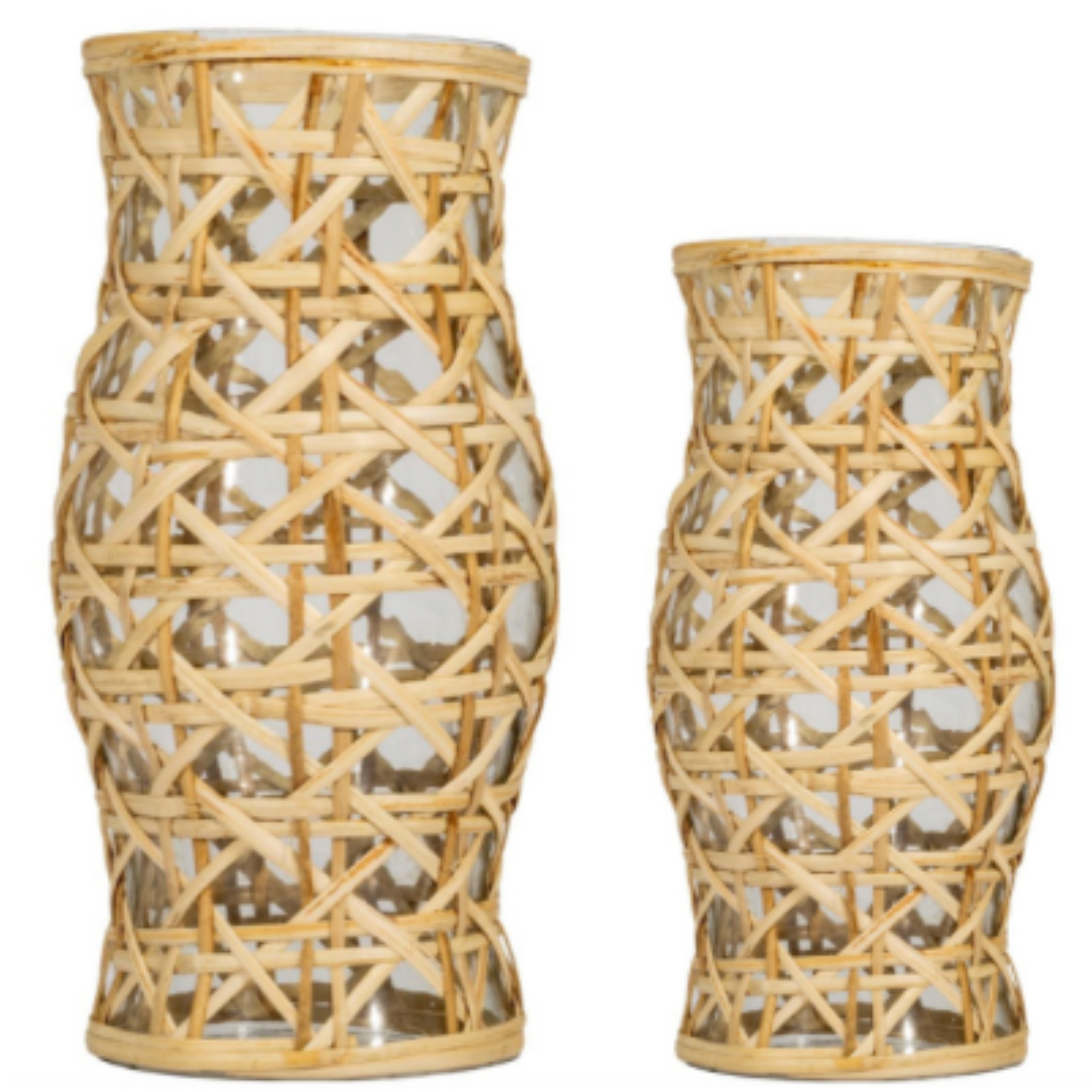 The Cane Weaved Hurricane is a strikingly unique piece that marries form and function with a touch of elegance. The cane weaving allows light to filter through in a gentle, diffused manner, casting beautiful patterns on surrounding surfaces.
