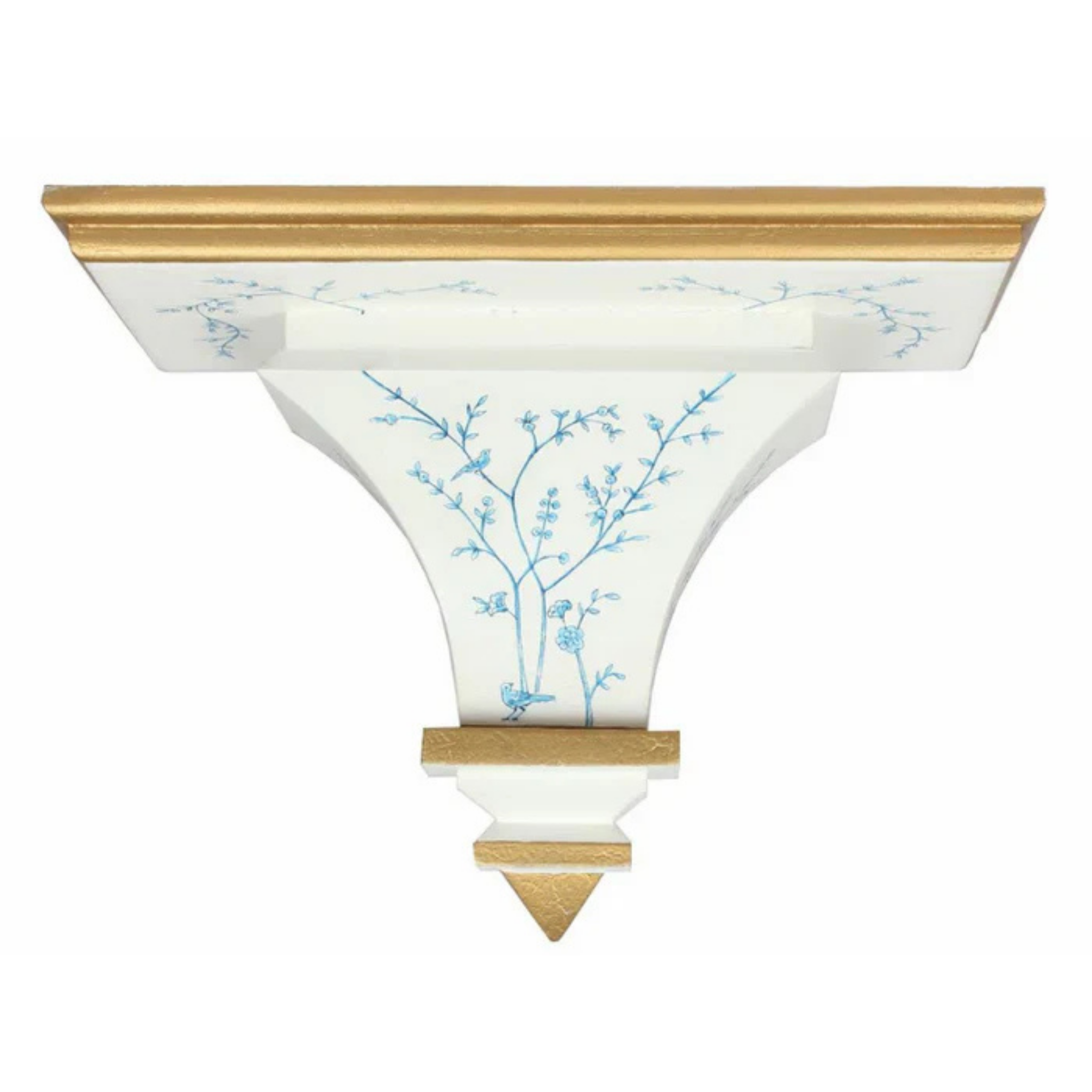 Ivory & Pale Blue Hand Painted Chinoiserie Wood Bracket