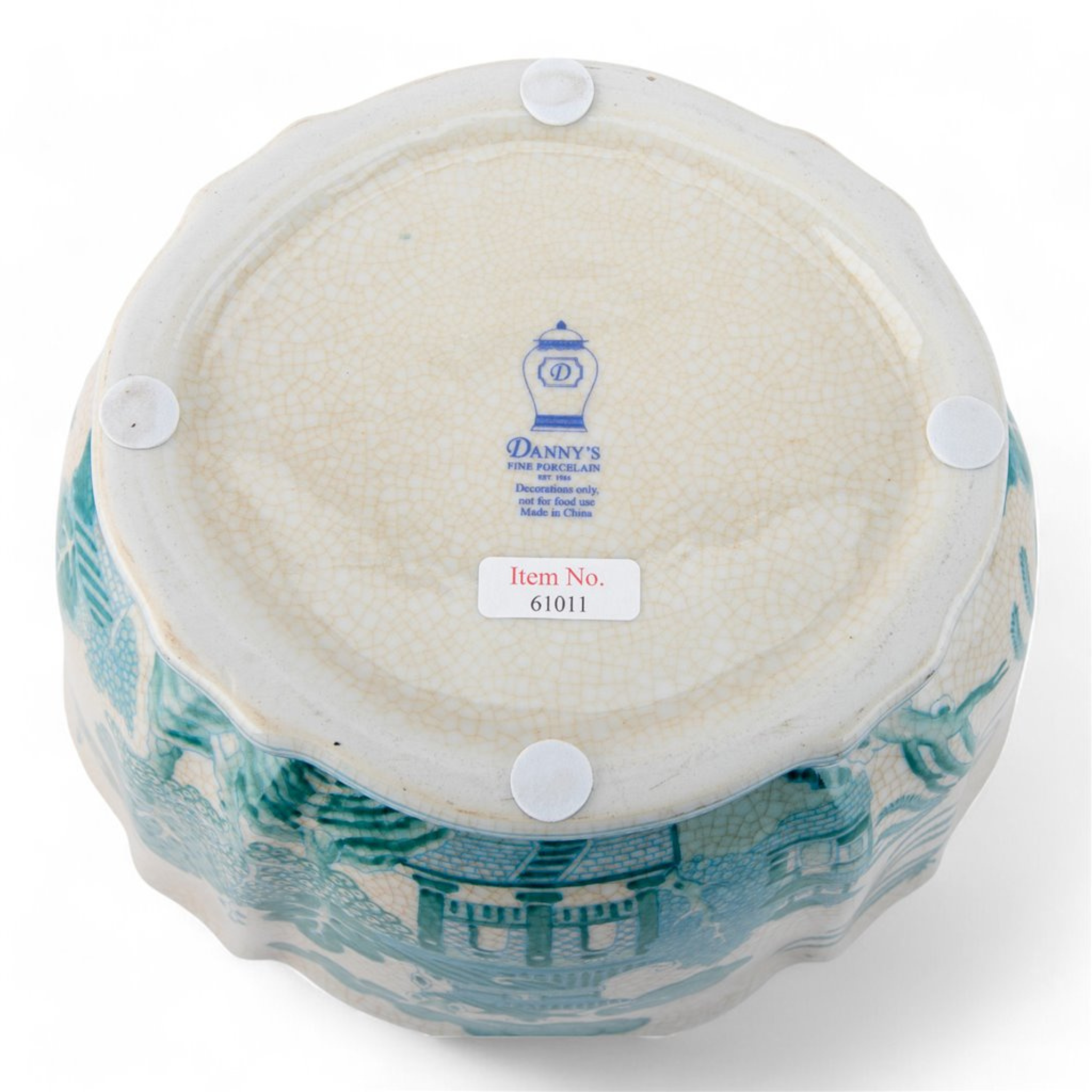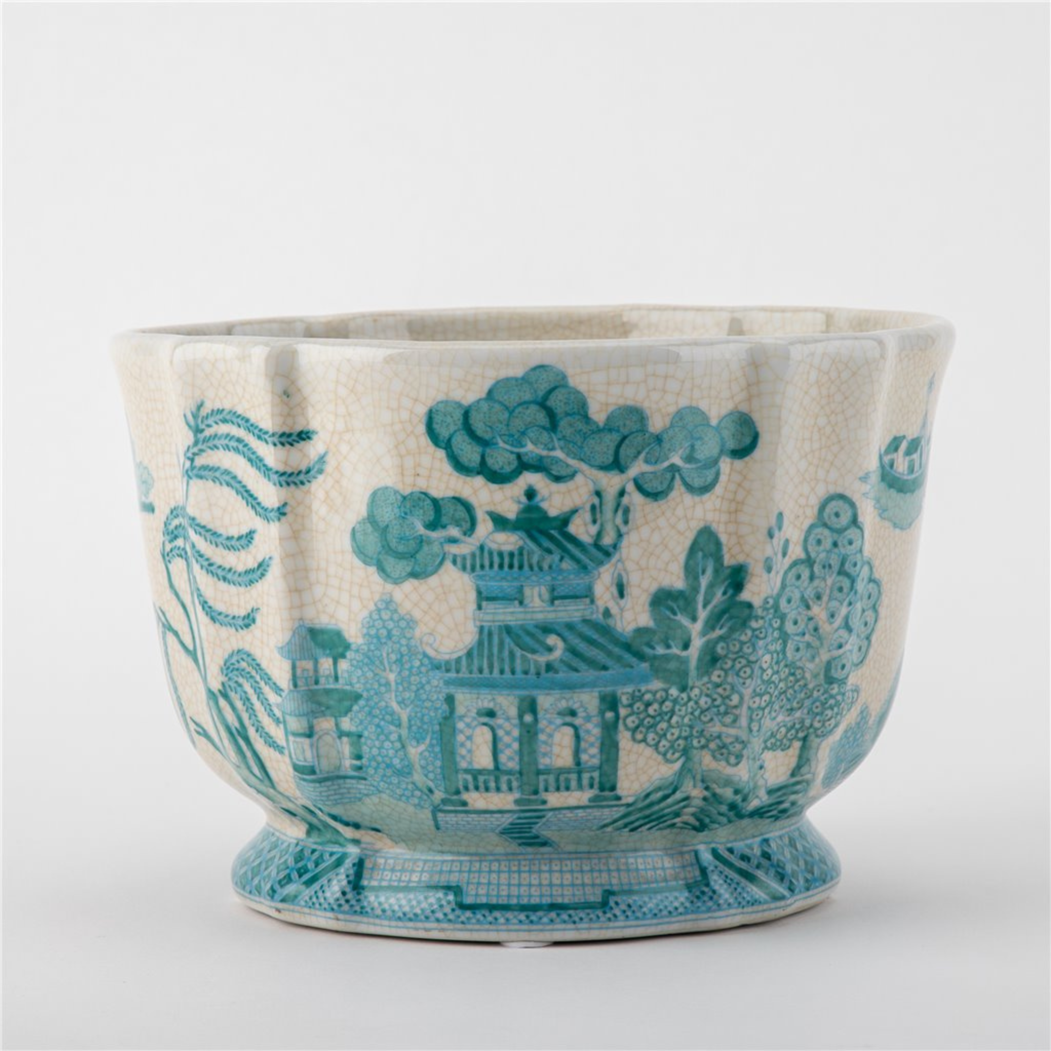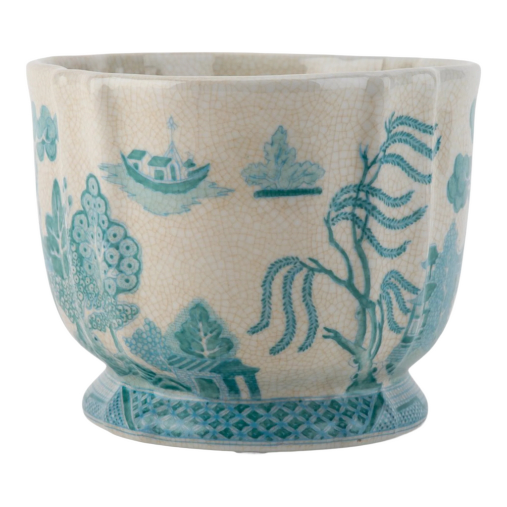 The planter features turquoise and white willow pattern. This item was handmade with care and attention to details. All handmade items may contain small imperfections which add to its own uniqueness and character. Please handle with care.