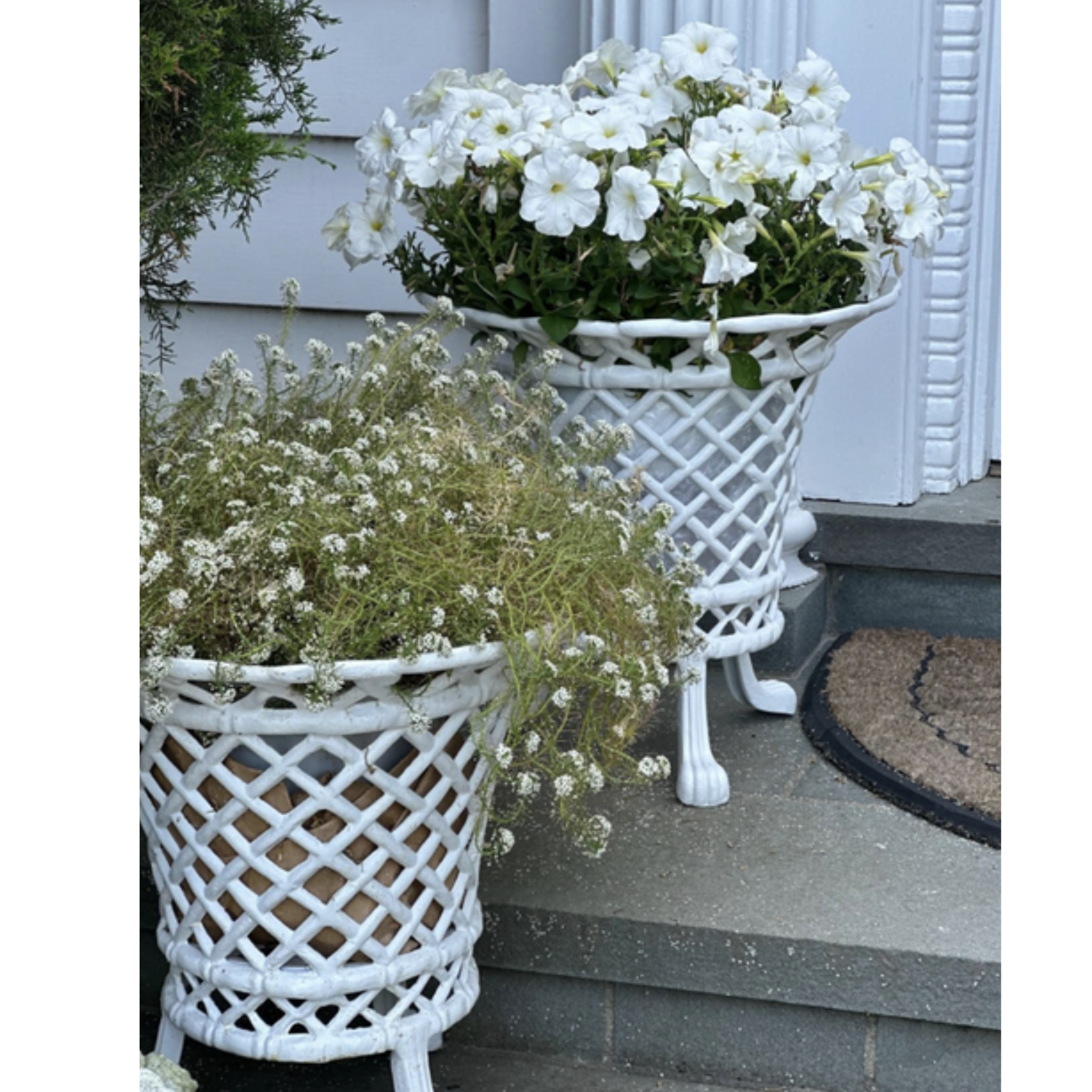 White Lattice Footed Floor Planter
