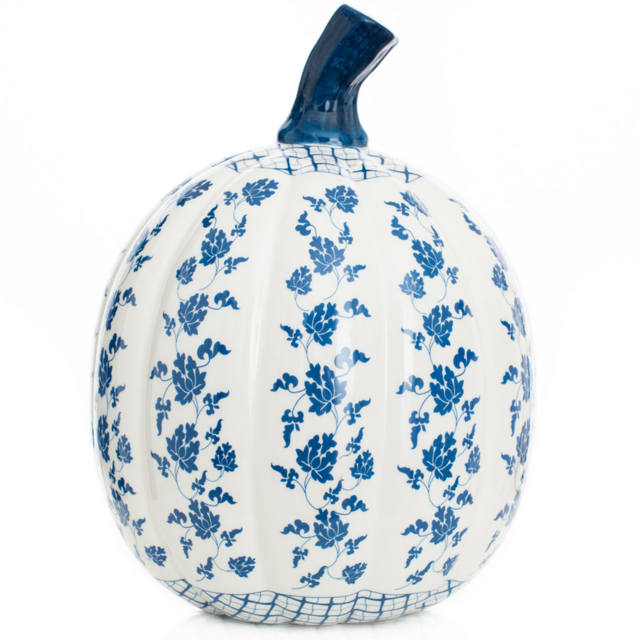Make a sophisticated statement with this large blue and white decorative pumpkin, beautifully crafted from fine porcelain. Featuring intricate patterns , it adds timeless elegance to any space. Perfect as a seasonal centerpiece or year-round accent, this piece blends traditional artistry with refined charm.