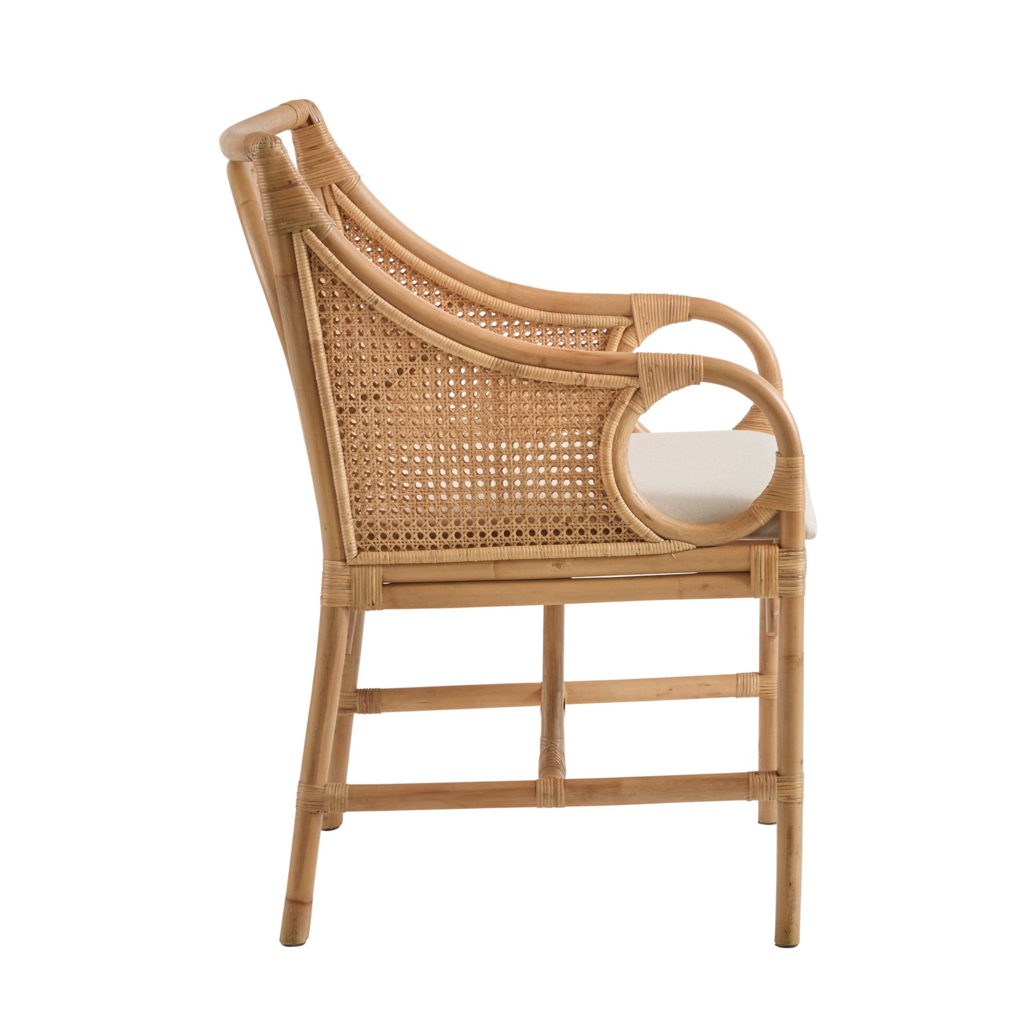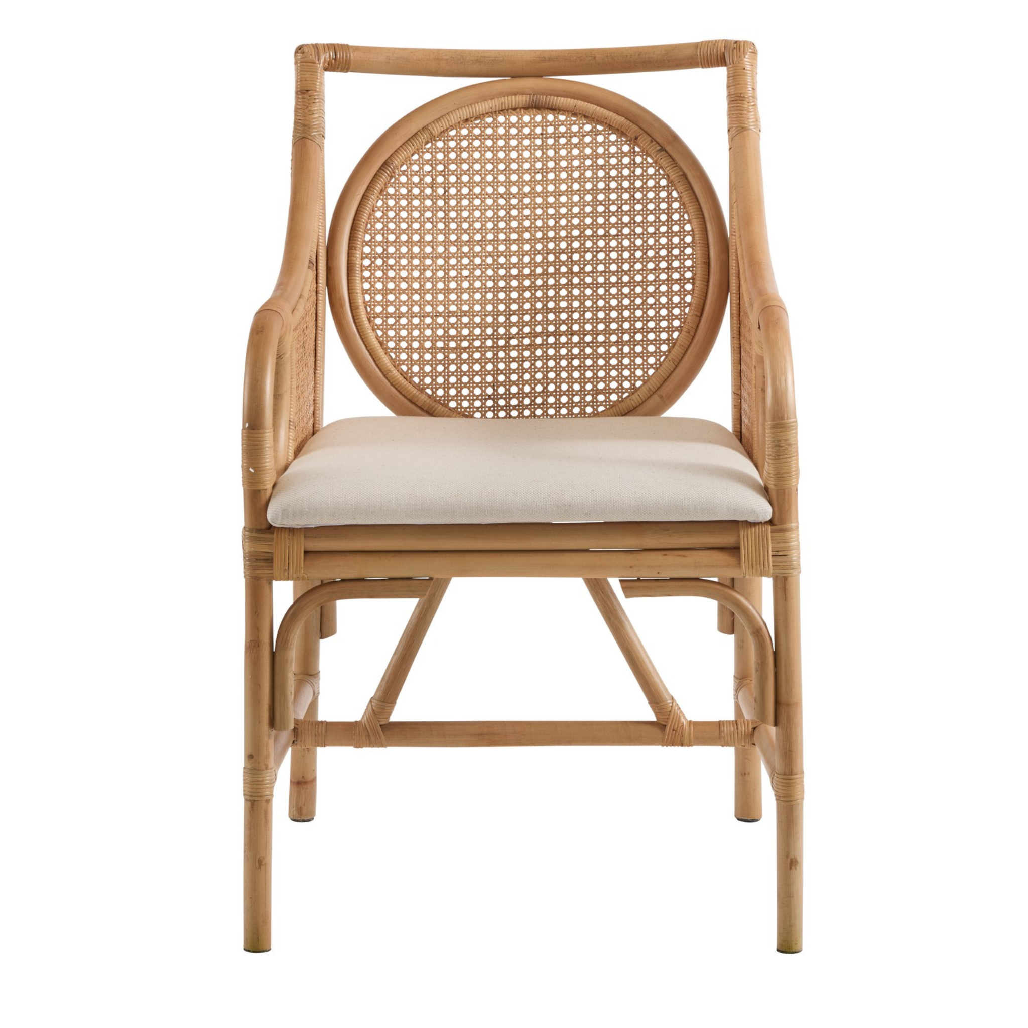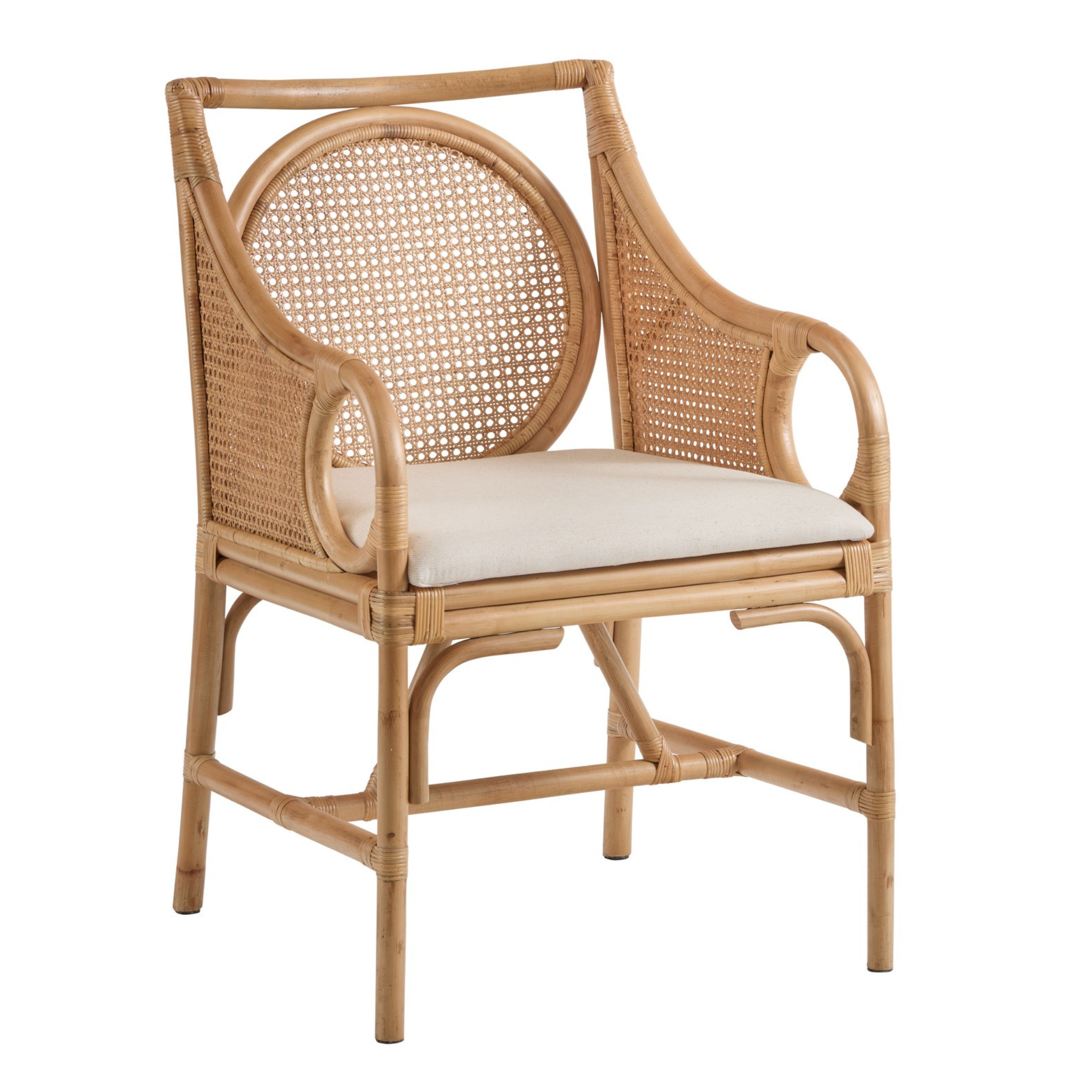 Add natural style to your home or office with this arm chair featuring a neutral cushion.