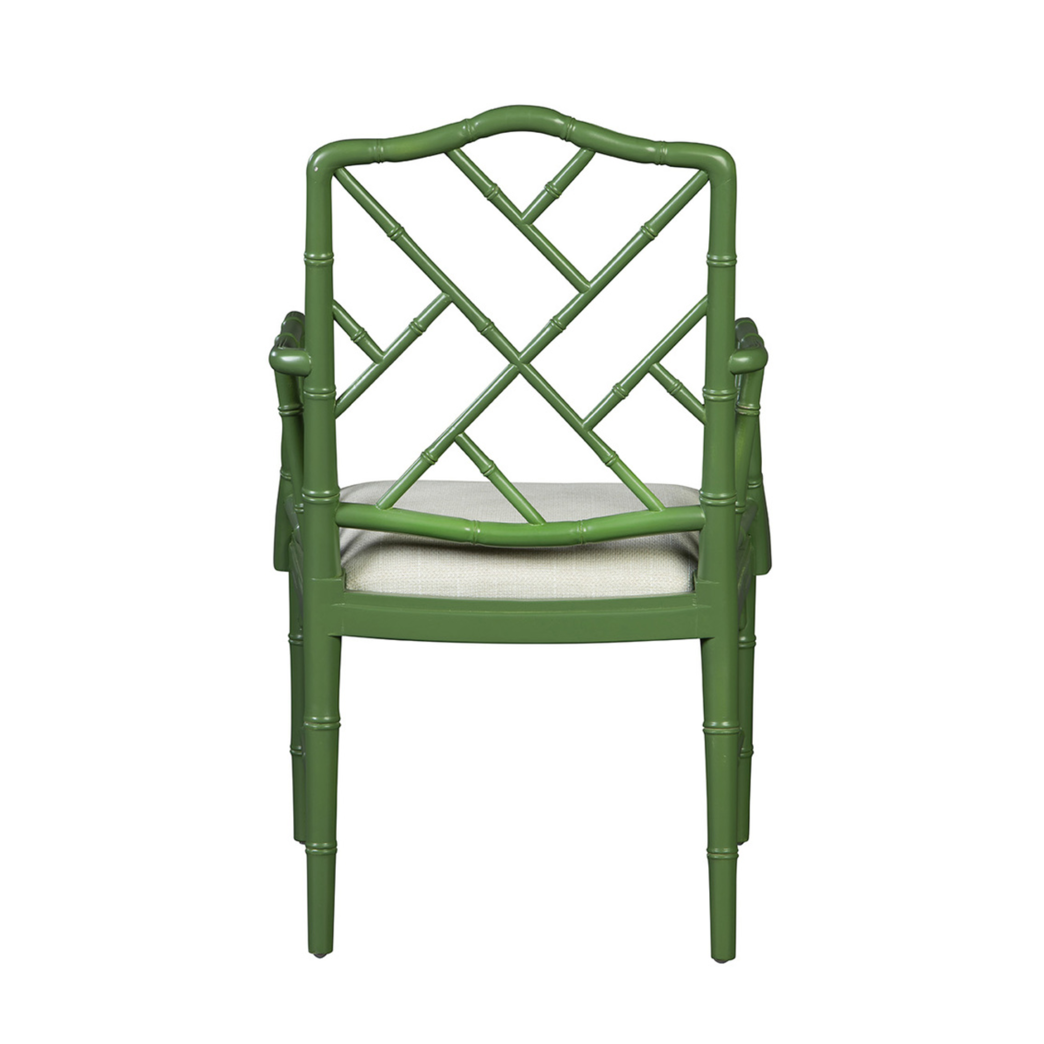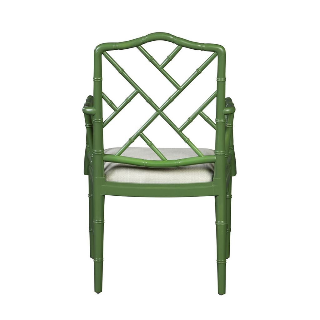 Thomas Chippendale would be thrilled to see one of his most popular designs living well into the 21st century! This solid mahogany frame is lightened with a green paint, and the performance linen seat makes this pretty chair a perfect selection for today's busy families. Click images for greater detail.