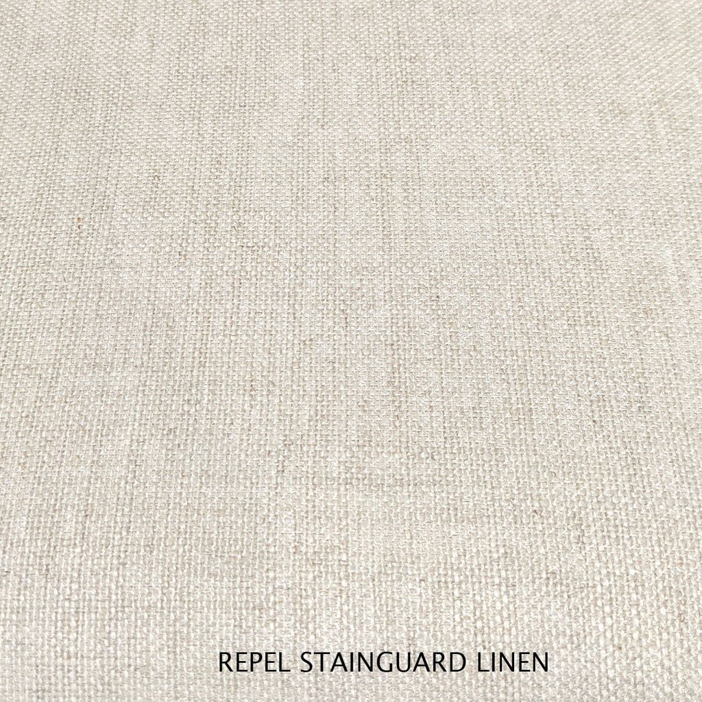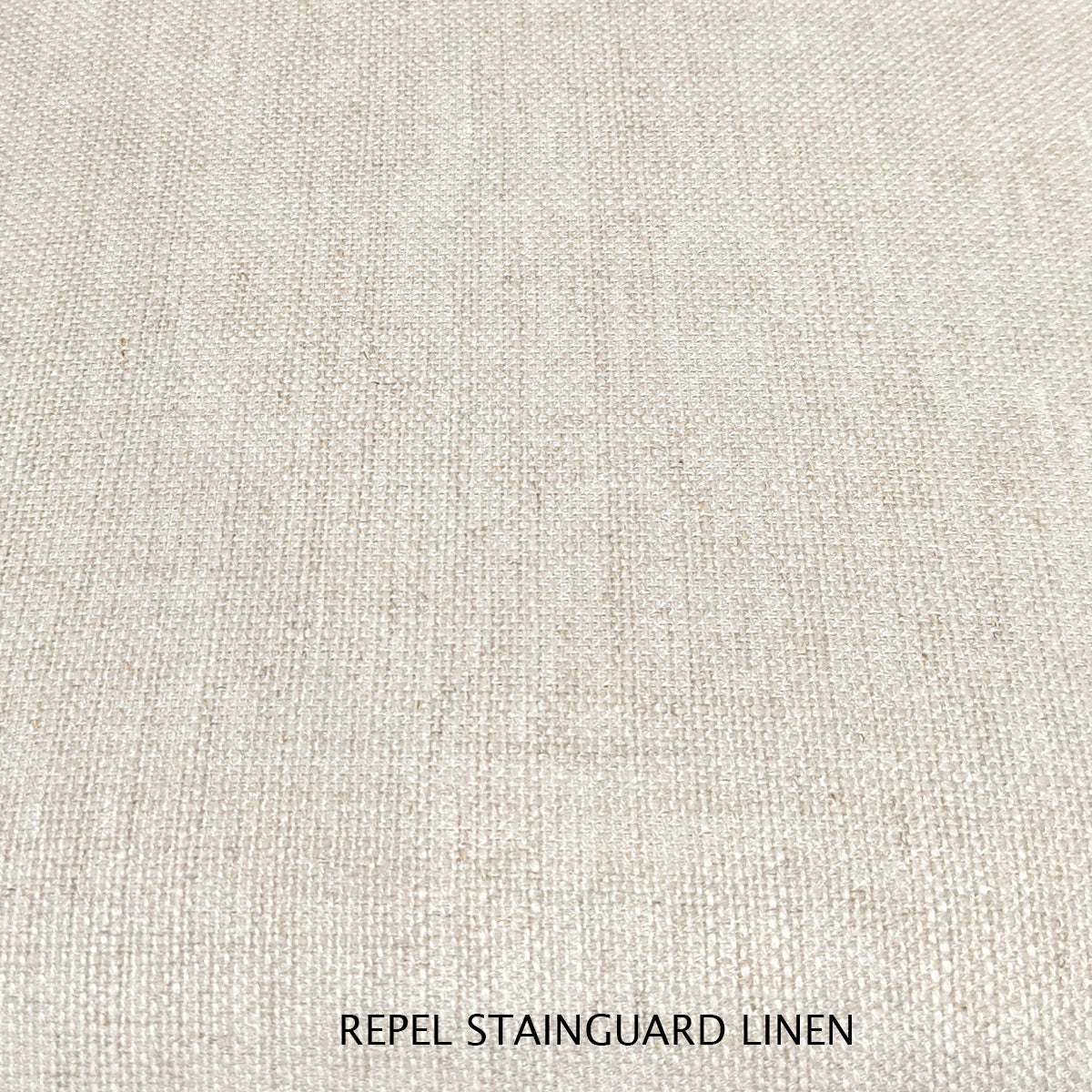 - Upholstered in Performance Repel Stainguard Linen with a welt