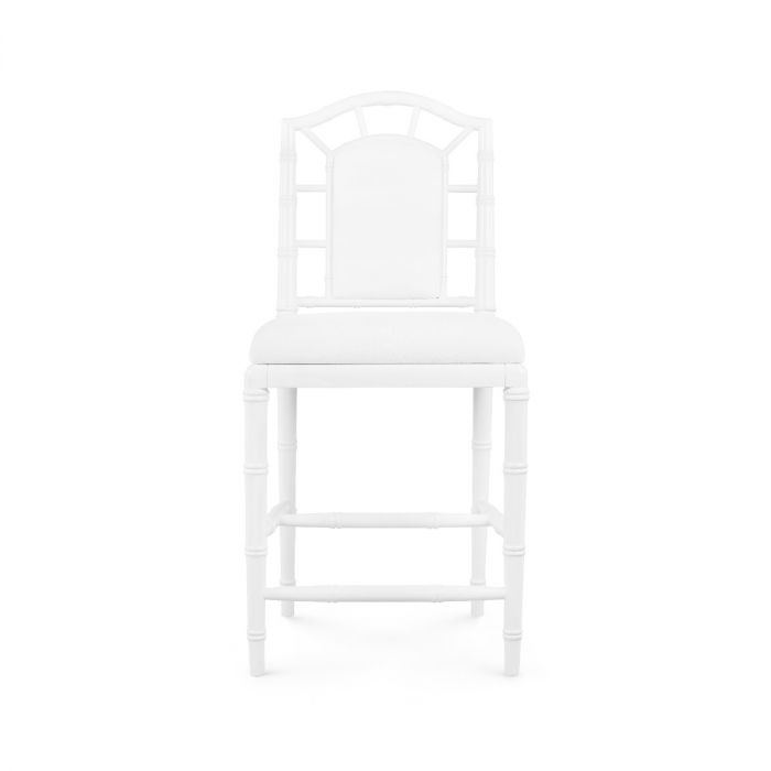 The Delia Counter Stool is a modern ode to Chinoiserie elegance inspired by Thomas Chippendale's 18th-century designs. Meticulously crafted from solid mahogany and intricately carved to mimic bamboo, it exudes classic refinement. The lacquered finish provides a subtle shine to the fretwork and structure. With a seat back and cushion fitted with linen for maximal comfort, it can be customized with the help of an upholsterer. Our counter stools have adjusted proportions to accommodate kitchen and bar counters perfectly.