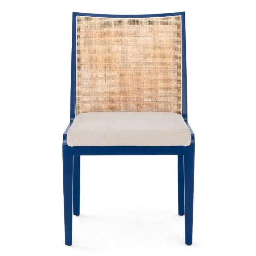 Ernest Side Chair in Deep Sea Blue Lacquer with Hand Woven Caning