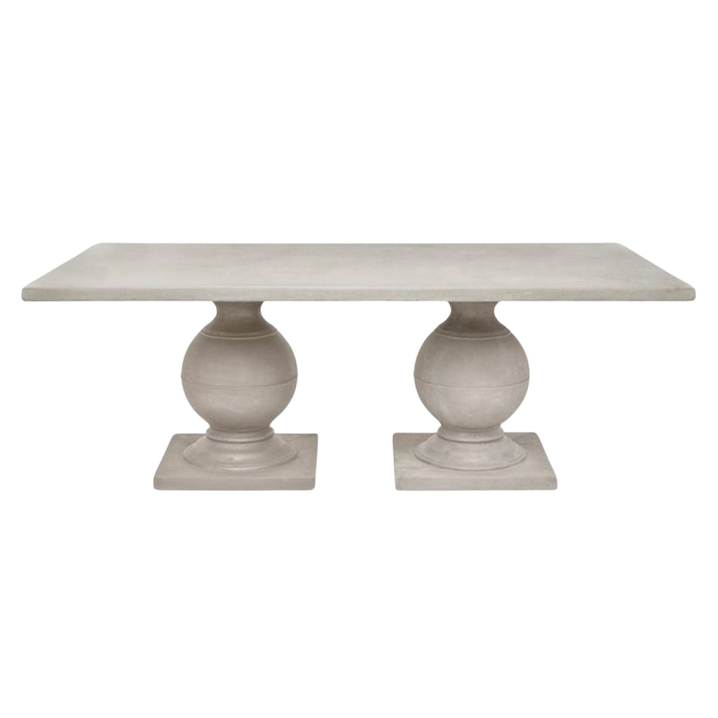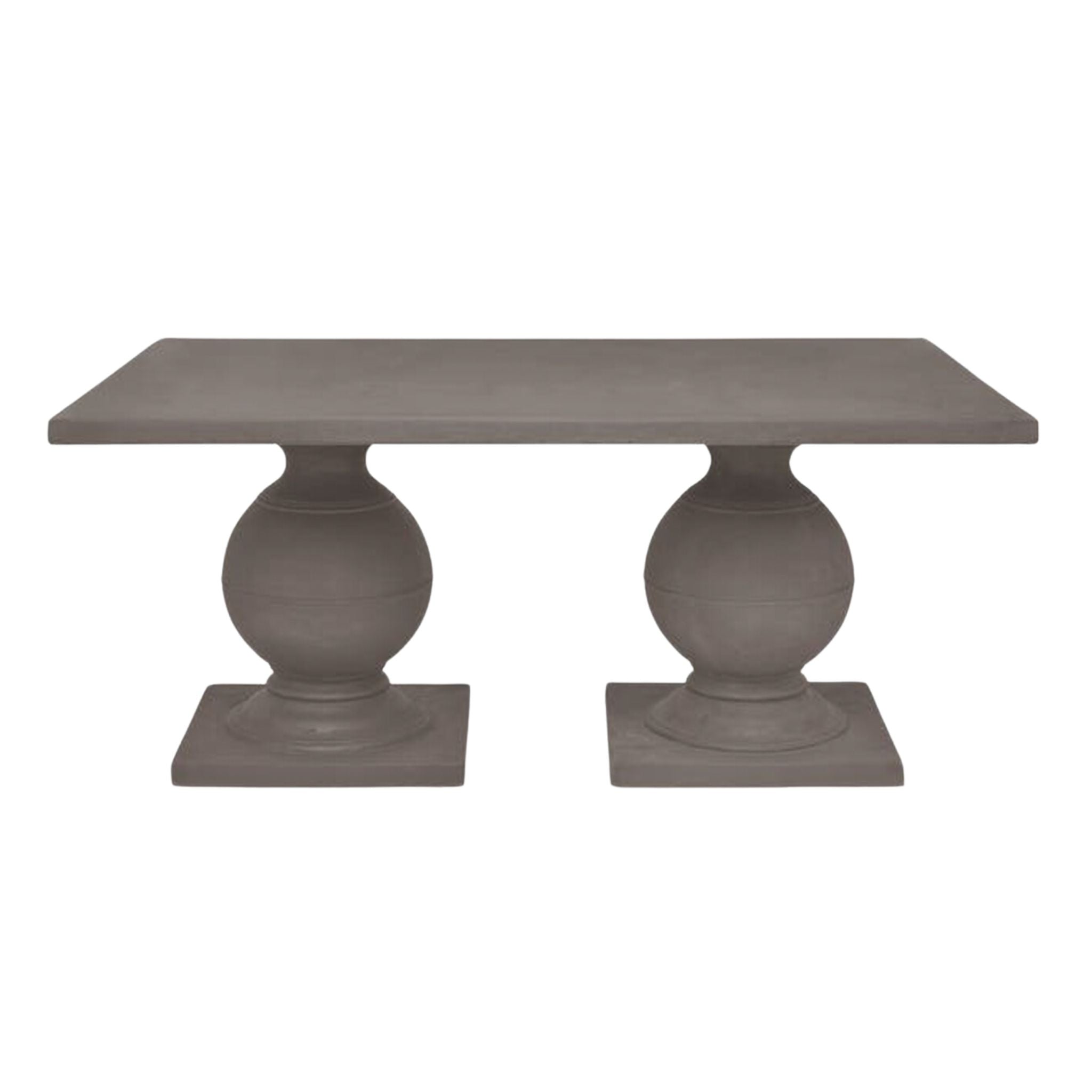The traditional base and simple shape of our Cyril table make it the ideal centerpiece for outdoor gatherings. Its pedestal stand gives it such an airy feel, you might want another one for inside as well! Concrete material naturally distresses. Minor cracks and imperfections are to be expected.